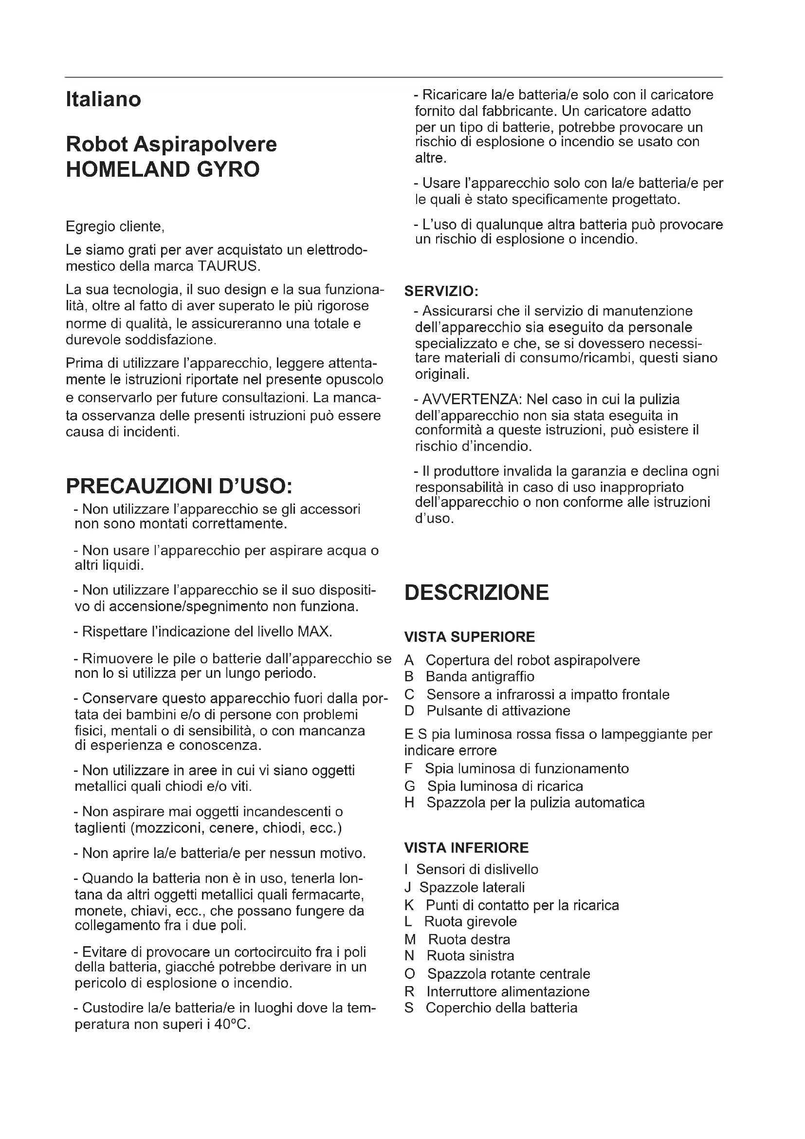 Homeland Gyro - Aspirapolvere TAURUS - Manuale utente e istruzioni gratuiti