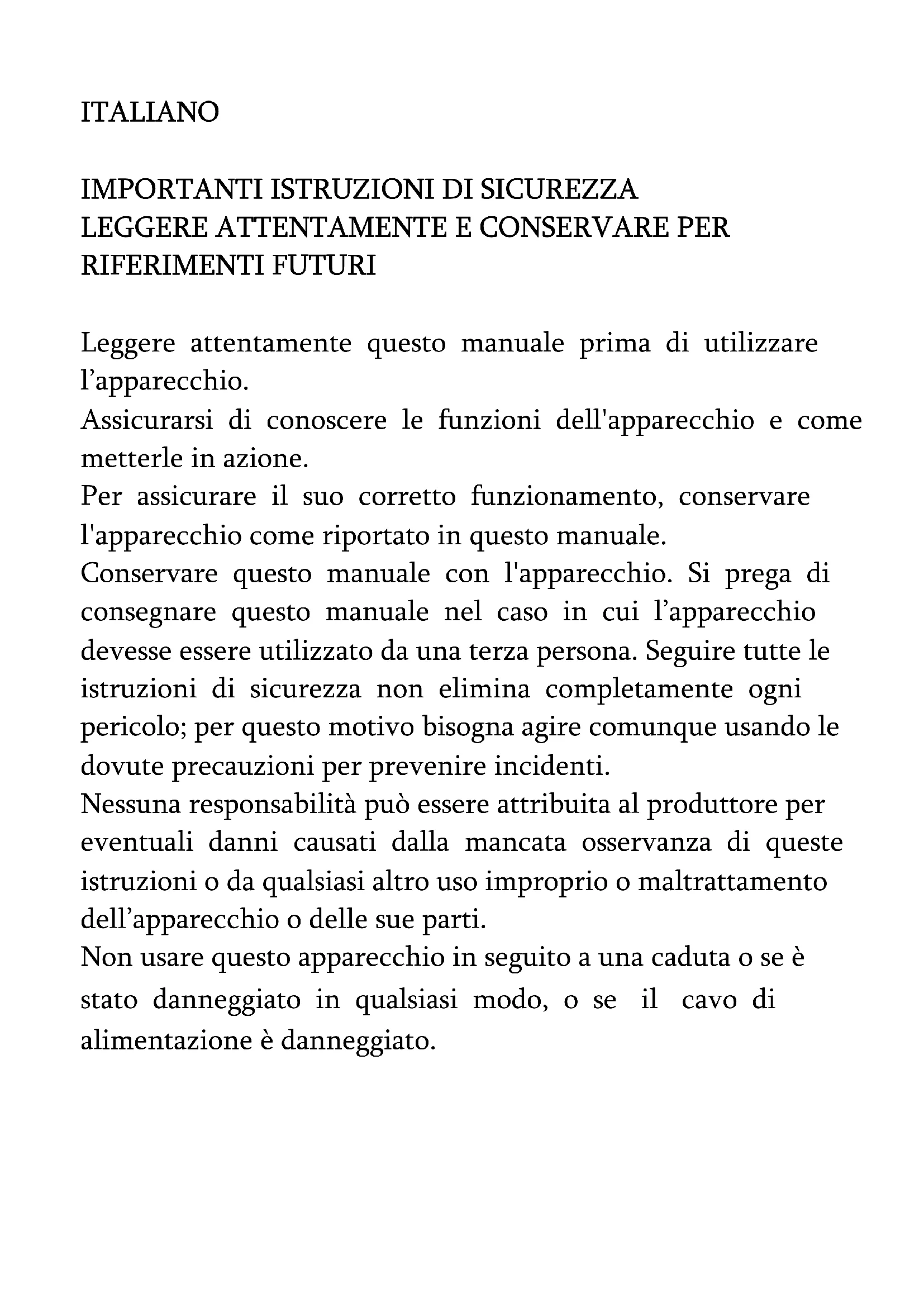 Leggere attentamente quello manuale prima di utilizzare l'apparecchio.