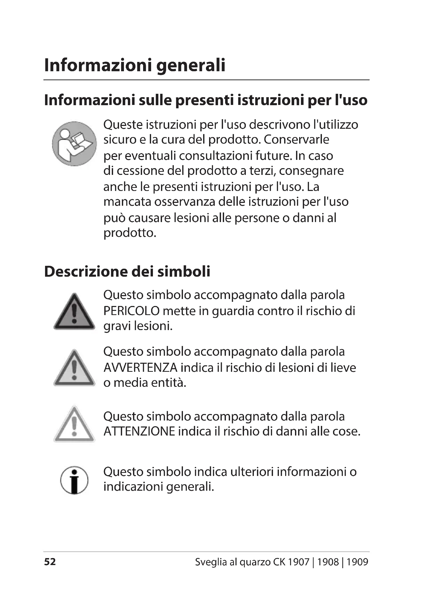 Con la presente la Waagen-Schmitt GmbH dichiara, che la sveglia al quarzo CK 1907, 1908 e 1909 è conforme alle direttive 2014/30/UE e 2011/65/UE