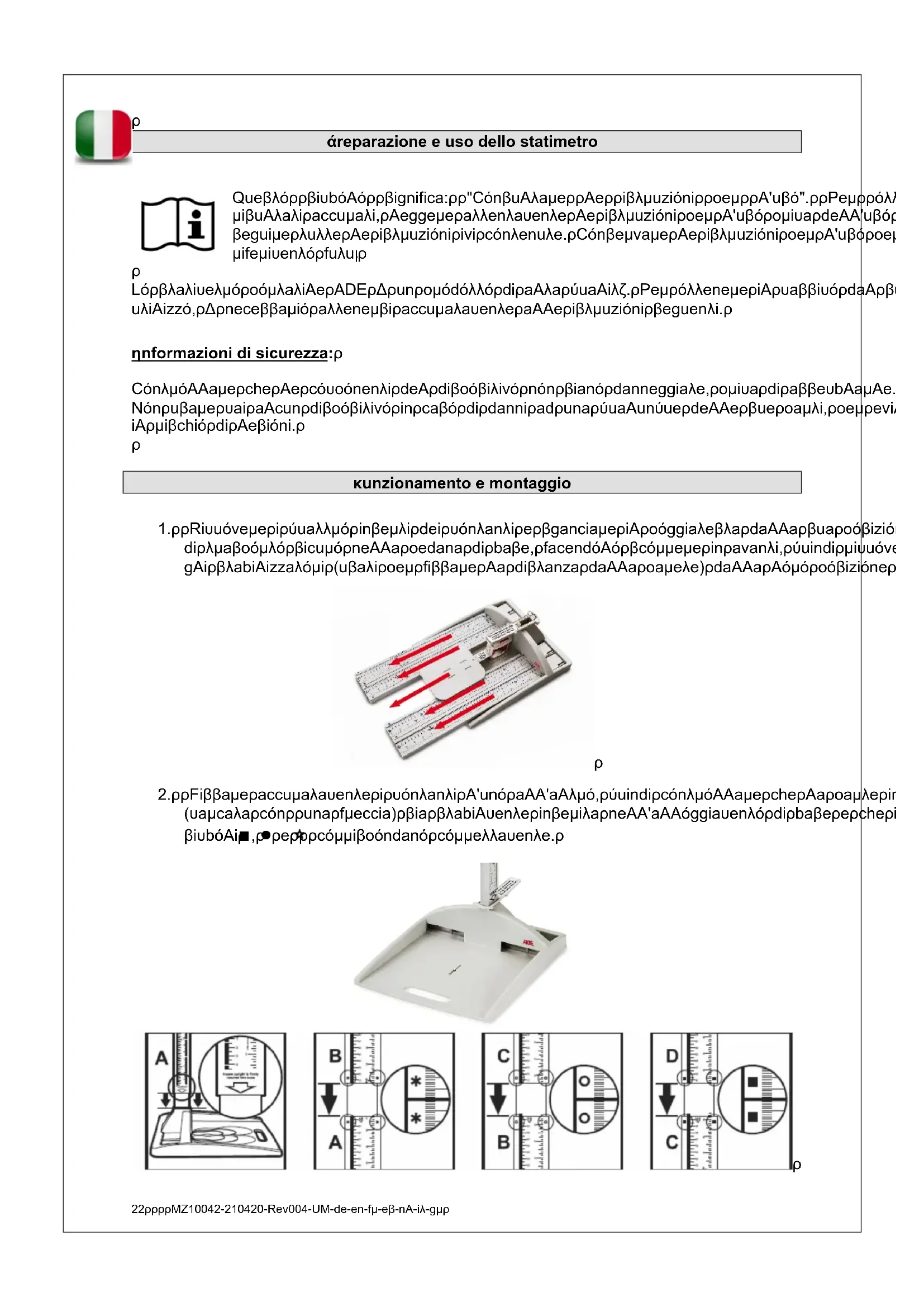 germany.de22 MZ10042-210420-Rev004-UM-de-en-fr-es-nl-it-gr Preparazione e uso dello statimetro Questo simbolo significa: "Consultare le istruzioni per l'uso". Per ottenere risultati accurati, leggere attentamente le istruzioni per l'uso prima dell'uso e seguire tutte le istruzioni ivi contenute. Conservare le istruzioni per l'uso per riferimento futuro.