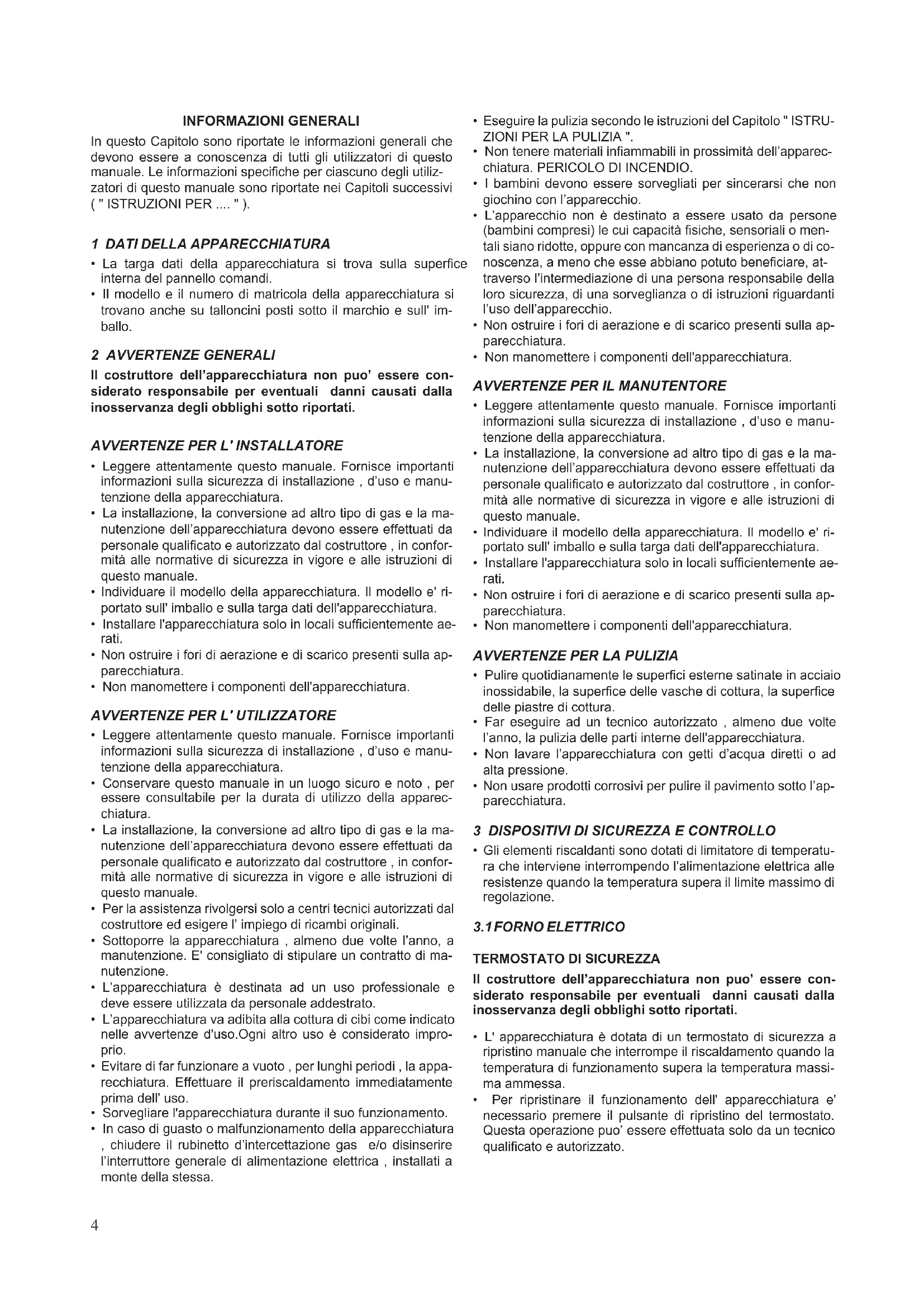 AVVERTENZE PER IL MANUTENTORE