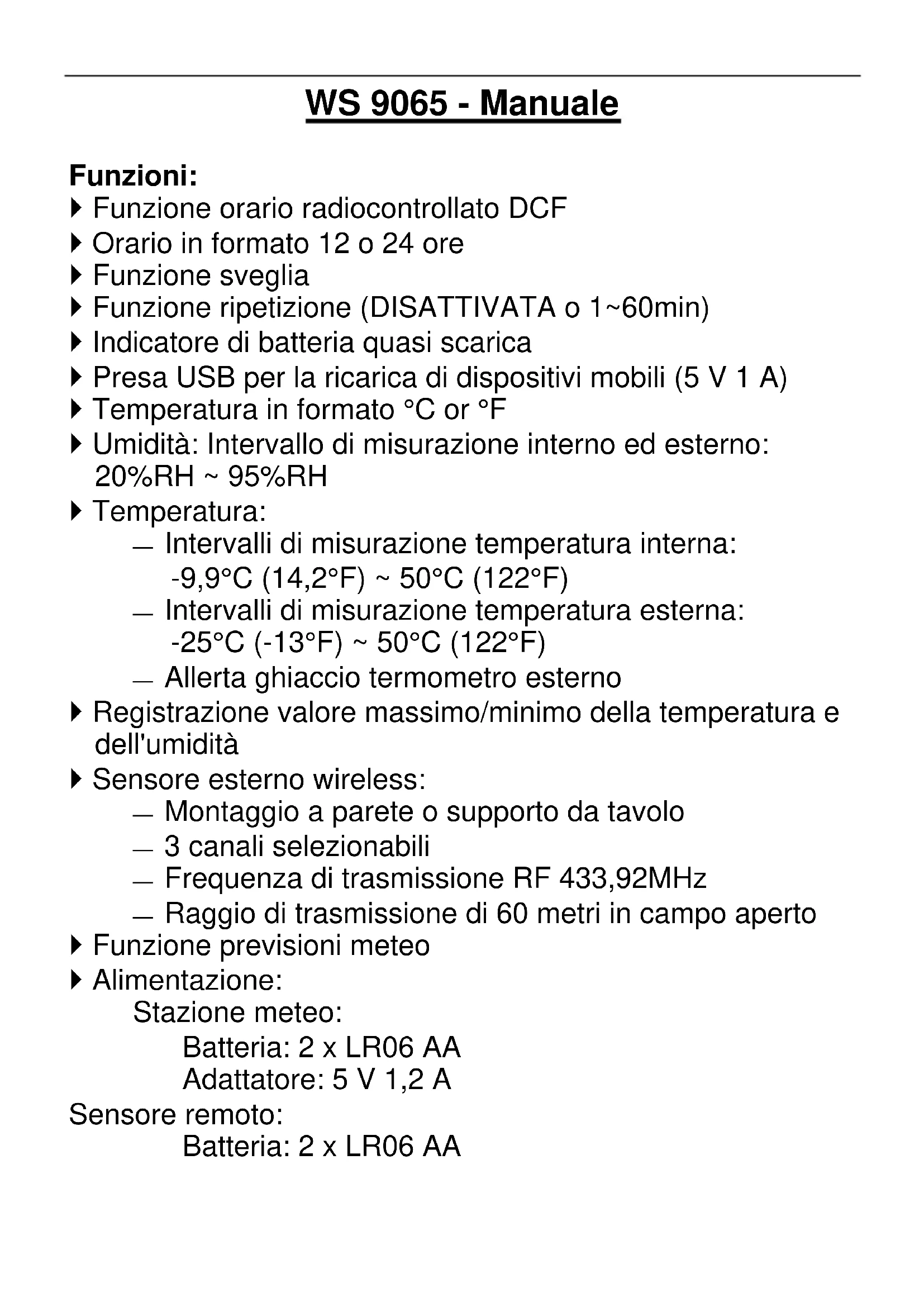MANUALE UTENTE WS 9065 TECHNOLINE