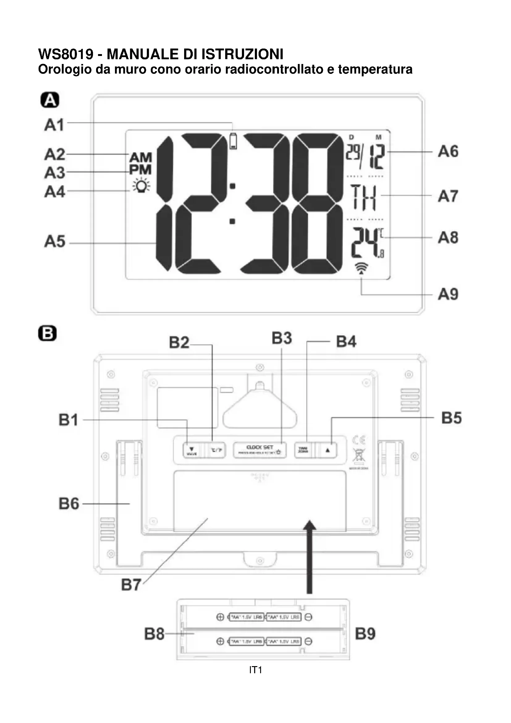 Se l'orologio在哪 orario non precise o non funziona correttamente, casa che potrebbe essere causata da scarica elettrostatica o altra interferenza, après il coperchio della batteria facendolo scorrere, estrarre le batterie e reinstallare osservando la corretta polarità +/-. L'unità tornerà alle impostazioni predefinite e bisognerà impostarla di nuovo.