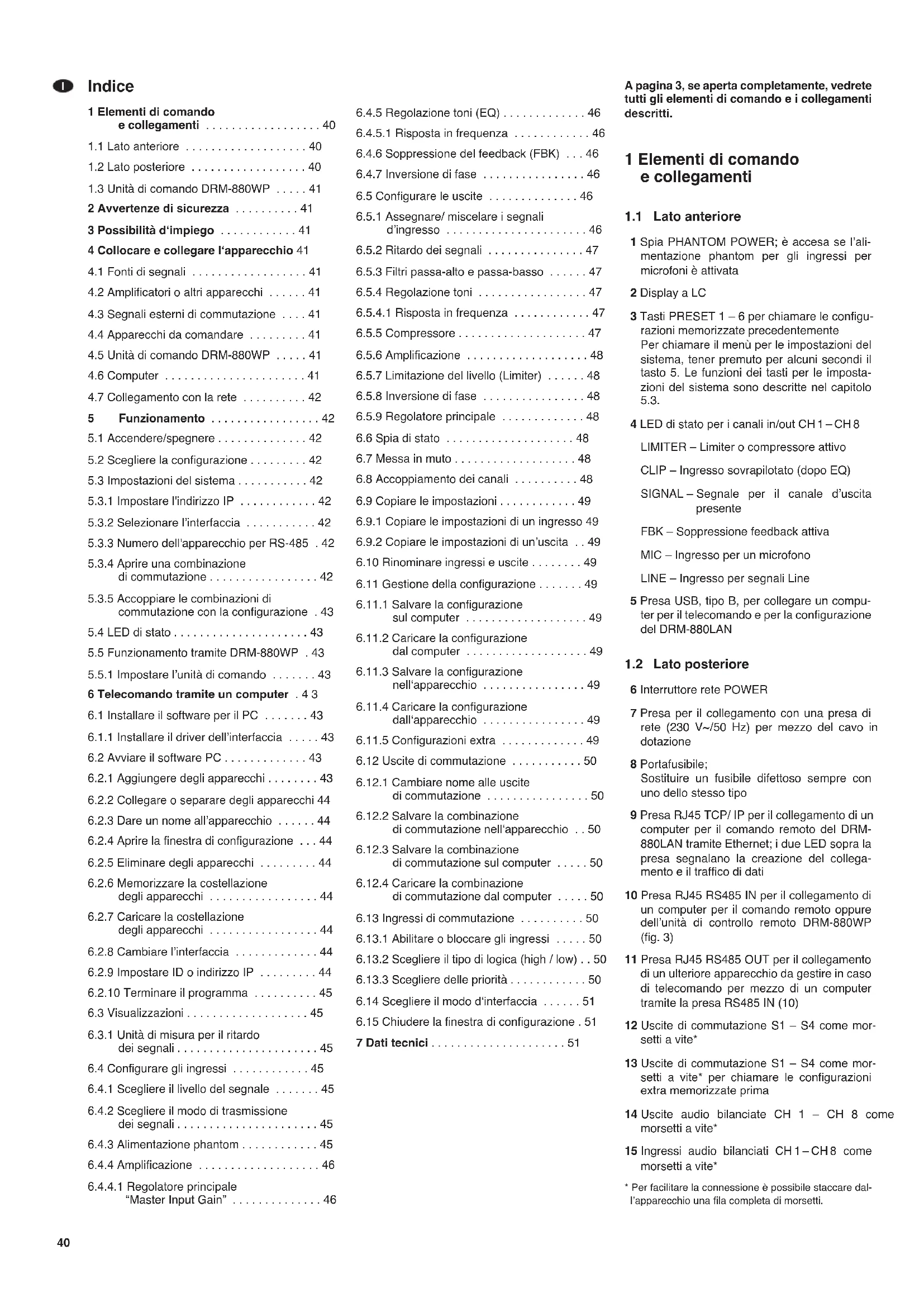 1.1 Lato anteriore 40