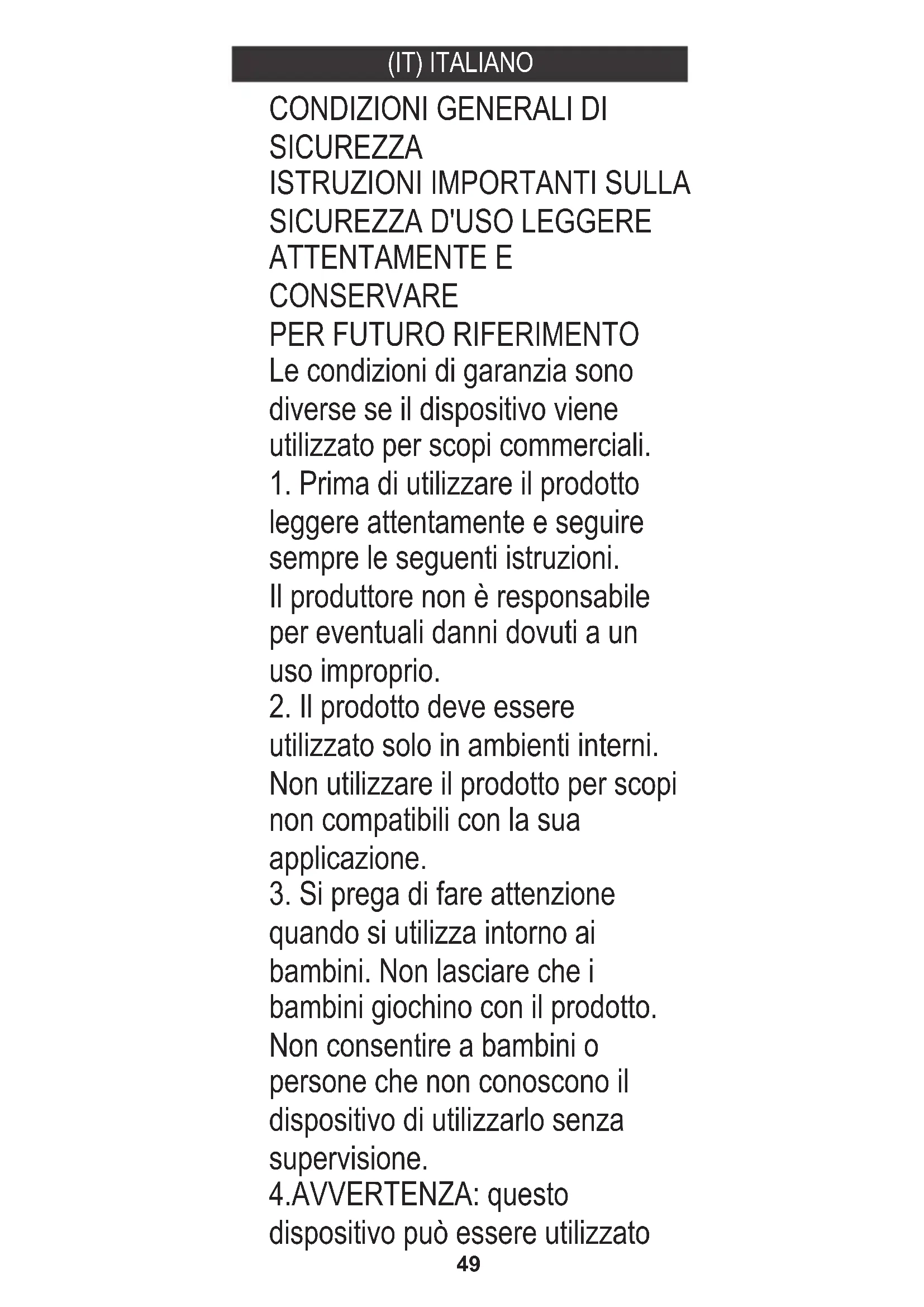 leggere attentamente e seguire sempre le seguenti istruzioni. Le condizioni di garanzia sono diverse se il dispositivo viene utilizzato per scopi commerciali.