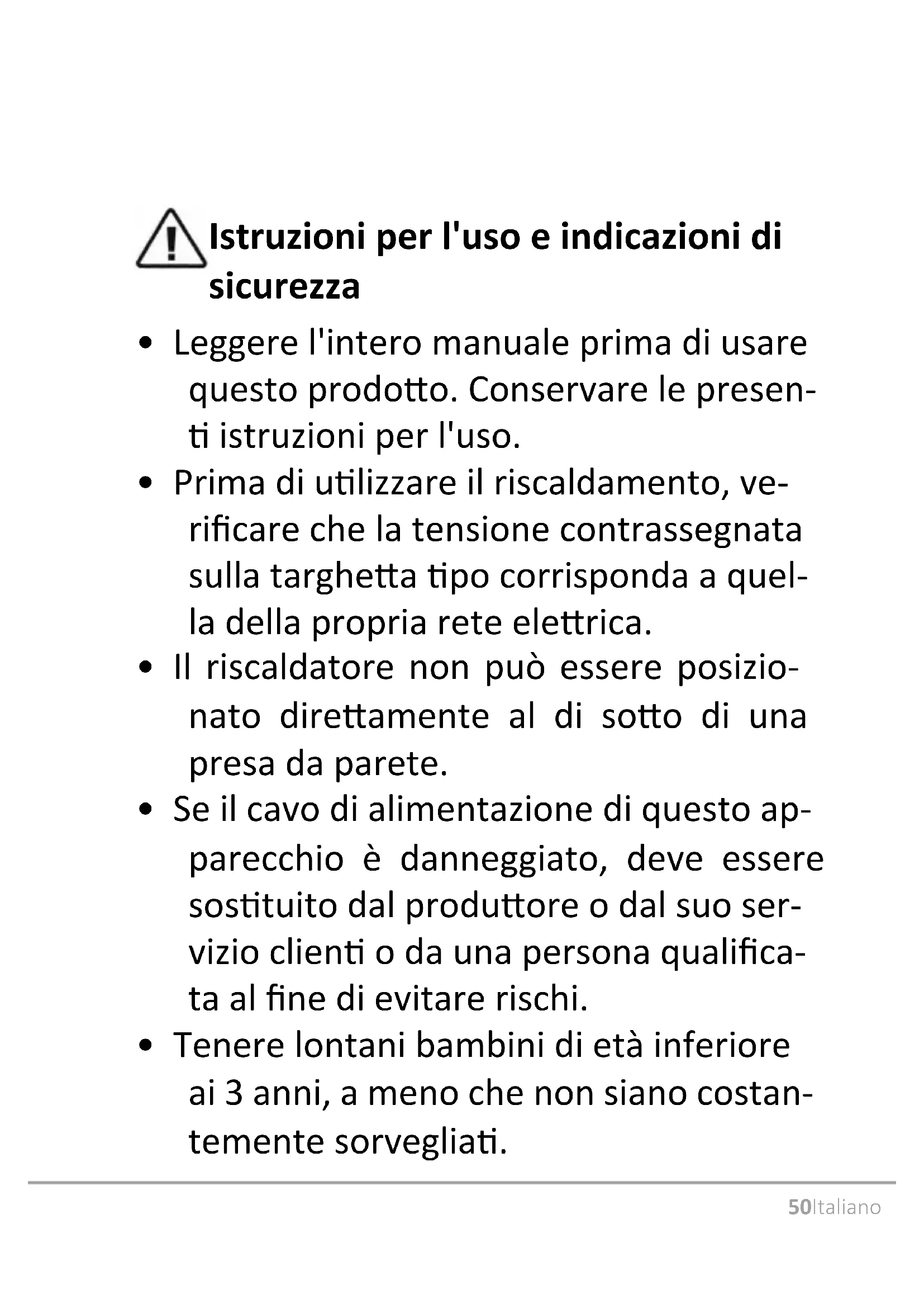 - Prima di ulizzare il riscaldamento, ve- ricare che la tensione contrassegnata sulla targhea po corrisponda a quel- la della propria rete elerica.