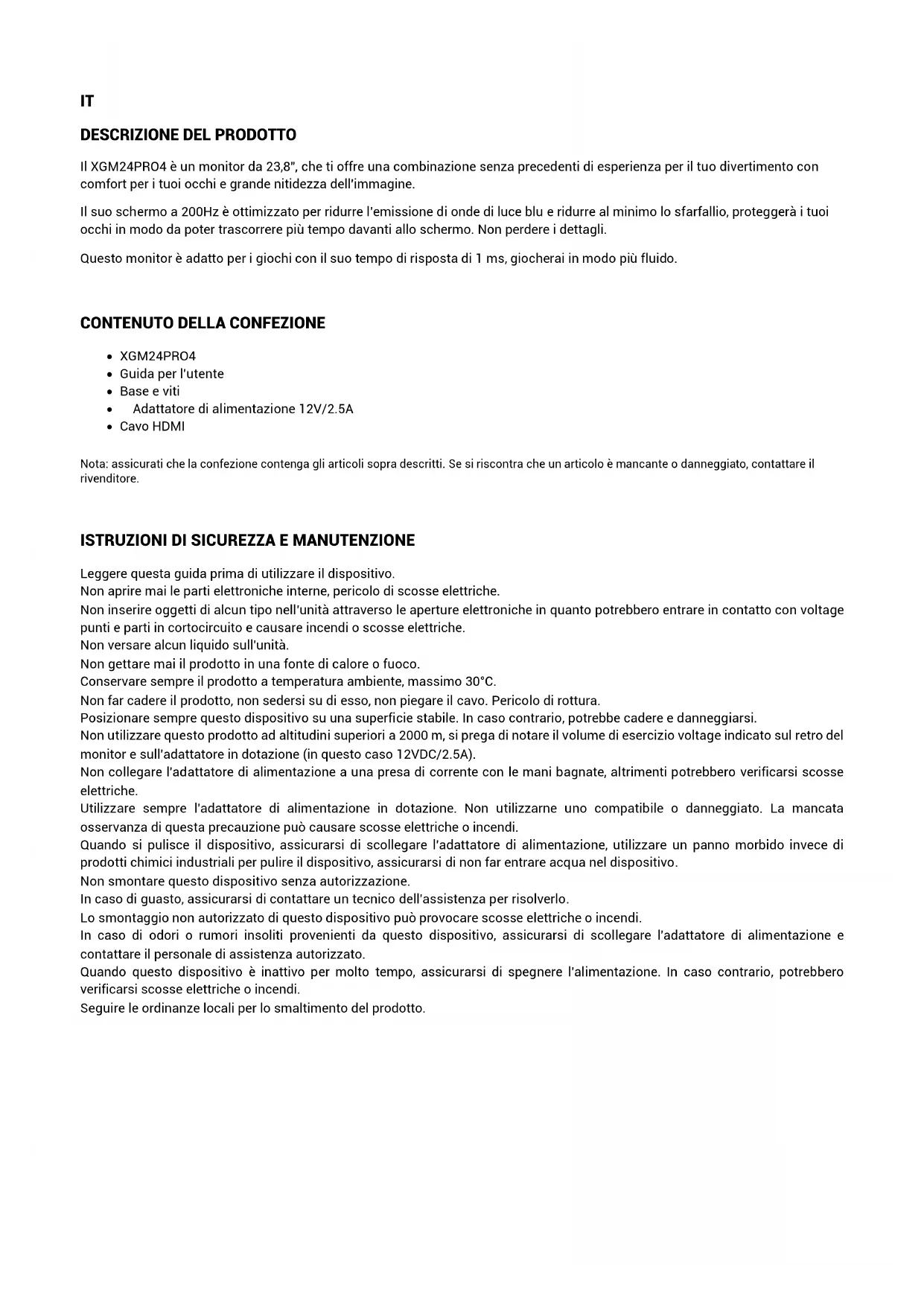 Scarica le istruzioni per il tuo Monitor in formato PDF gratuitamente! Trova il tuo manuale XGM27PRO4 - KeepOut e riprendi in mano il tuo dispositivo elettronico. In questa pagina sono pubblicati tutti i documenti necessari per l'utilizzo del tuo dispositivo. XGM27PRO4 del marchio KeepOut.