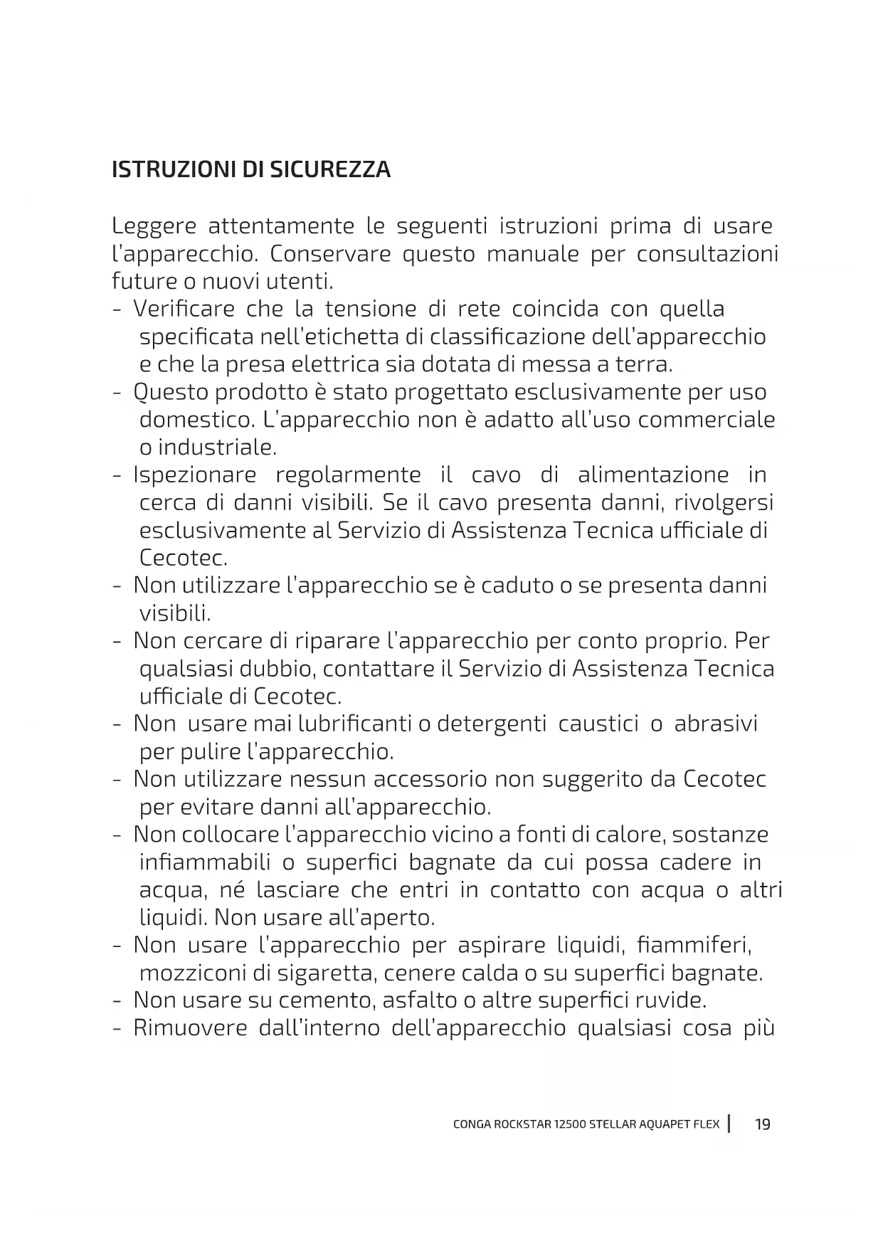 MANUALE UTENTE Conga Rockstar 12500 Stellar AquaPet Flex CECOTEC