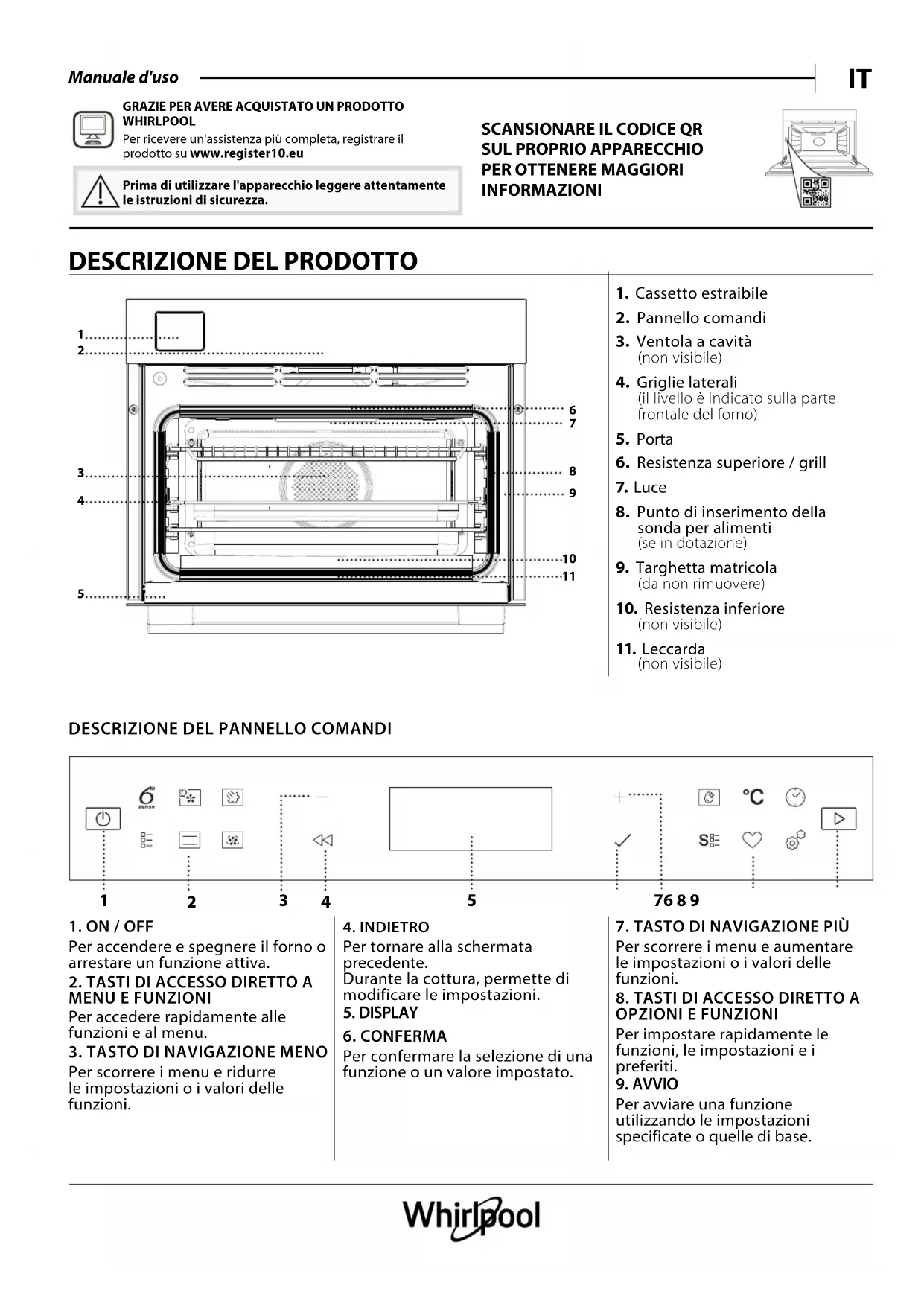 WCS7A9PHTSSGA - Forno WHIRLPOOL - Manuale utente e istruzioni gratuiti