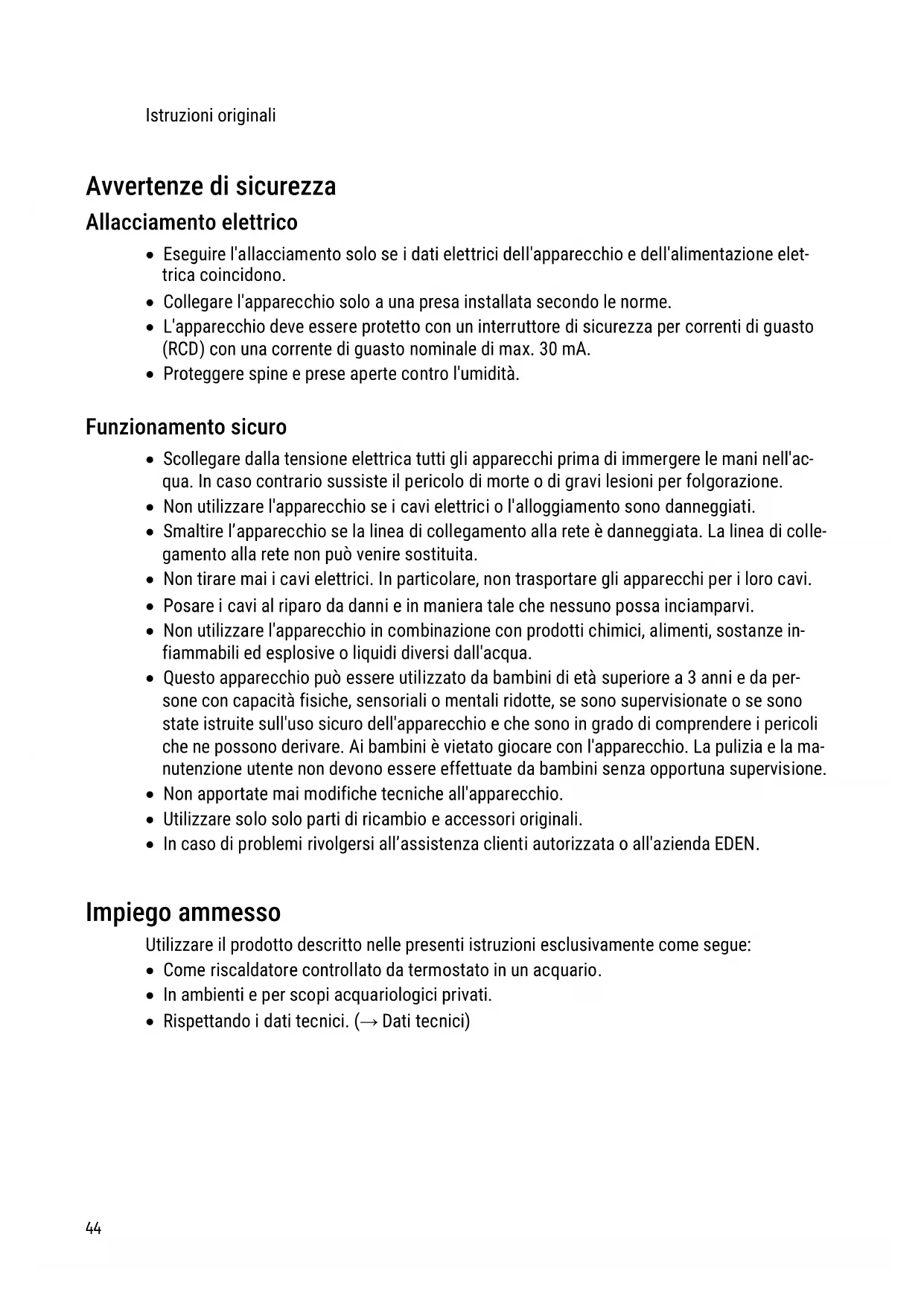 - In caso di problemi rivolgersi all’assistenza clienti autorizzata o all'azienda EDEN. Impiego ammesso Utilizzare il prodotto descritto nelle presenti istruzioni esclusivamente come segue: