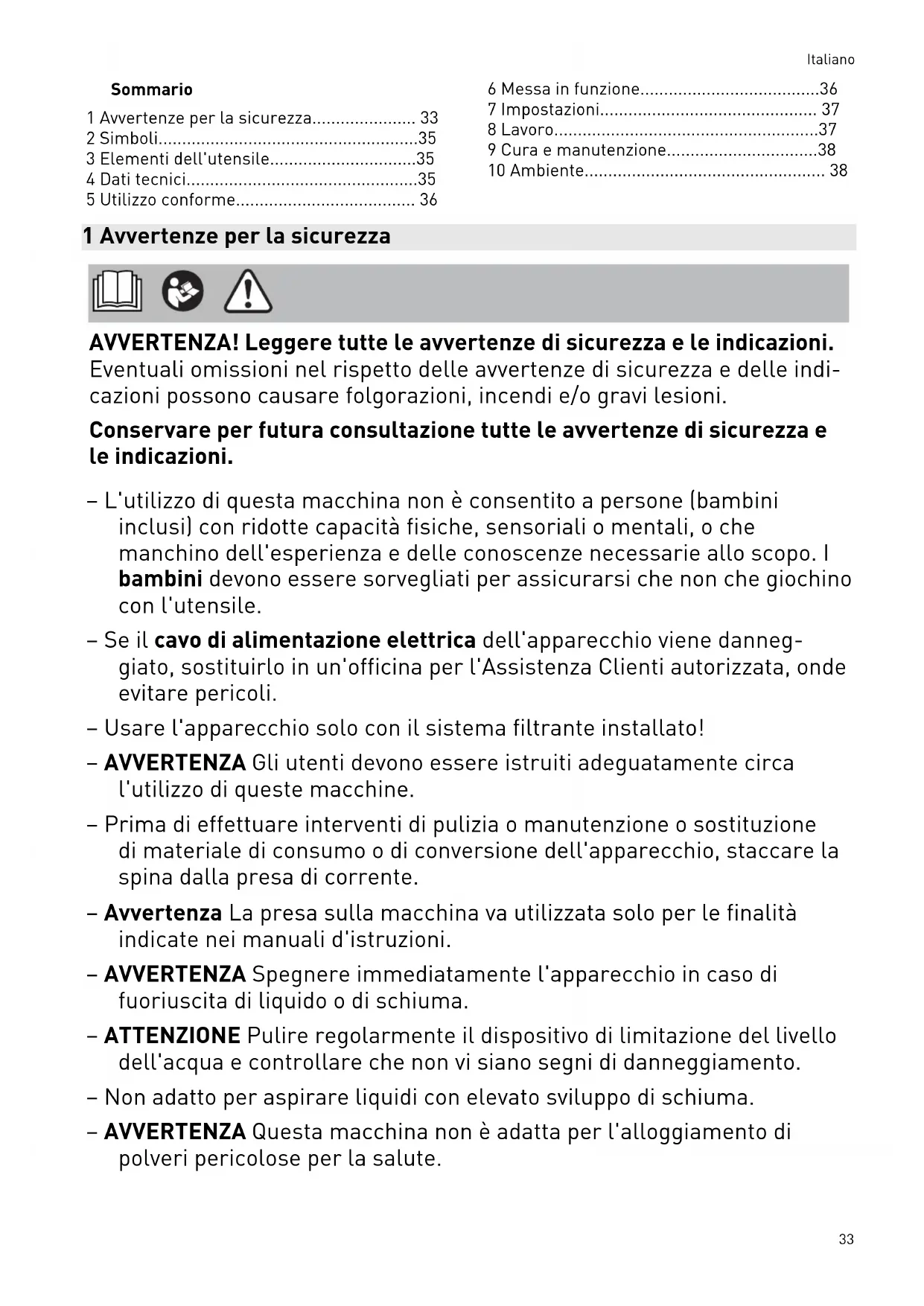 - 6 Messa in funzione p. 36