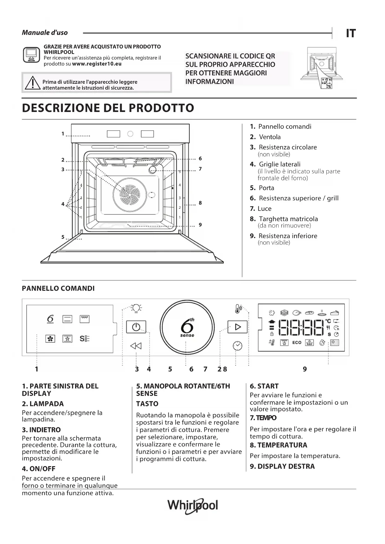 WHIRLPOOL Per ricevere un'assistenza più completa, registrare il prodotto su www.register10.eu Prima di utilizzare l'apparecchio leggere attentamente le istruzioni di sicurezza.
