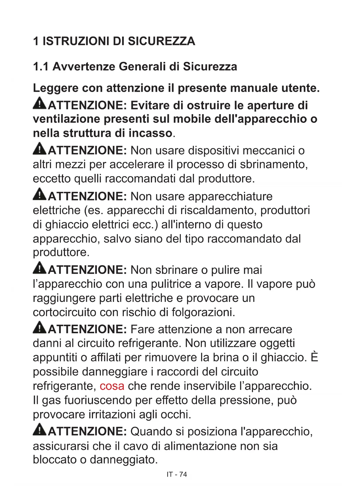 1.1 Avvertenze Generali di Sicurezza 74