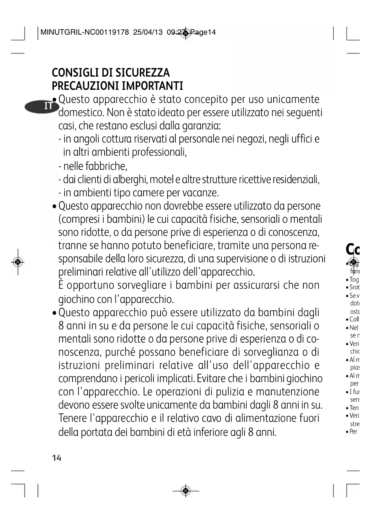 MINUTGRIL-NC00119178 25/04/13 09:27 Page14• La temperatura delle superfici accessibili può essere elevata quando l’apparecchio è in funzione. Non toccare mai le superfici calde dell'elettrodomestico.