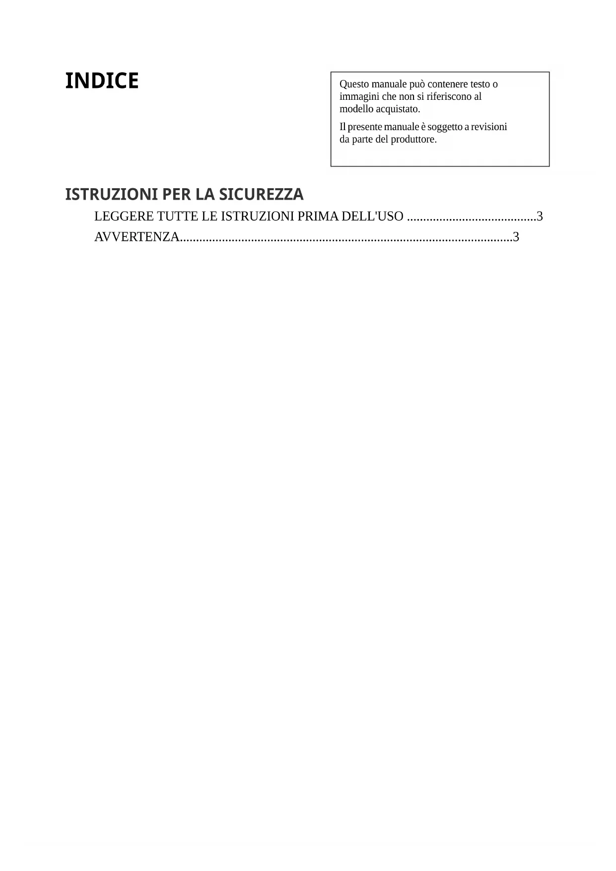 Le istruzioni seguenti sono fornite allo scopo di evitare rischi o danni imprevisti dovuti all'uso errato e non sicuro dell'elettrodomestico.