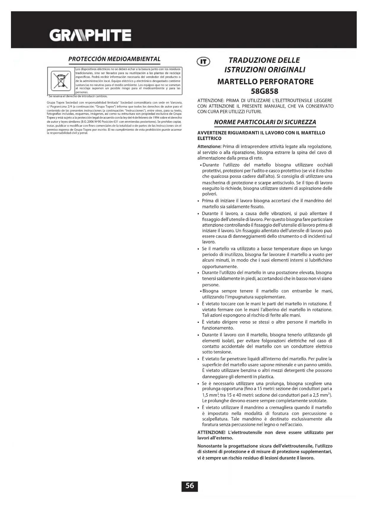 58G858 - Trapano Graphite - Manuale utente e istruzioni gratuiti