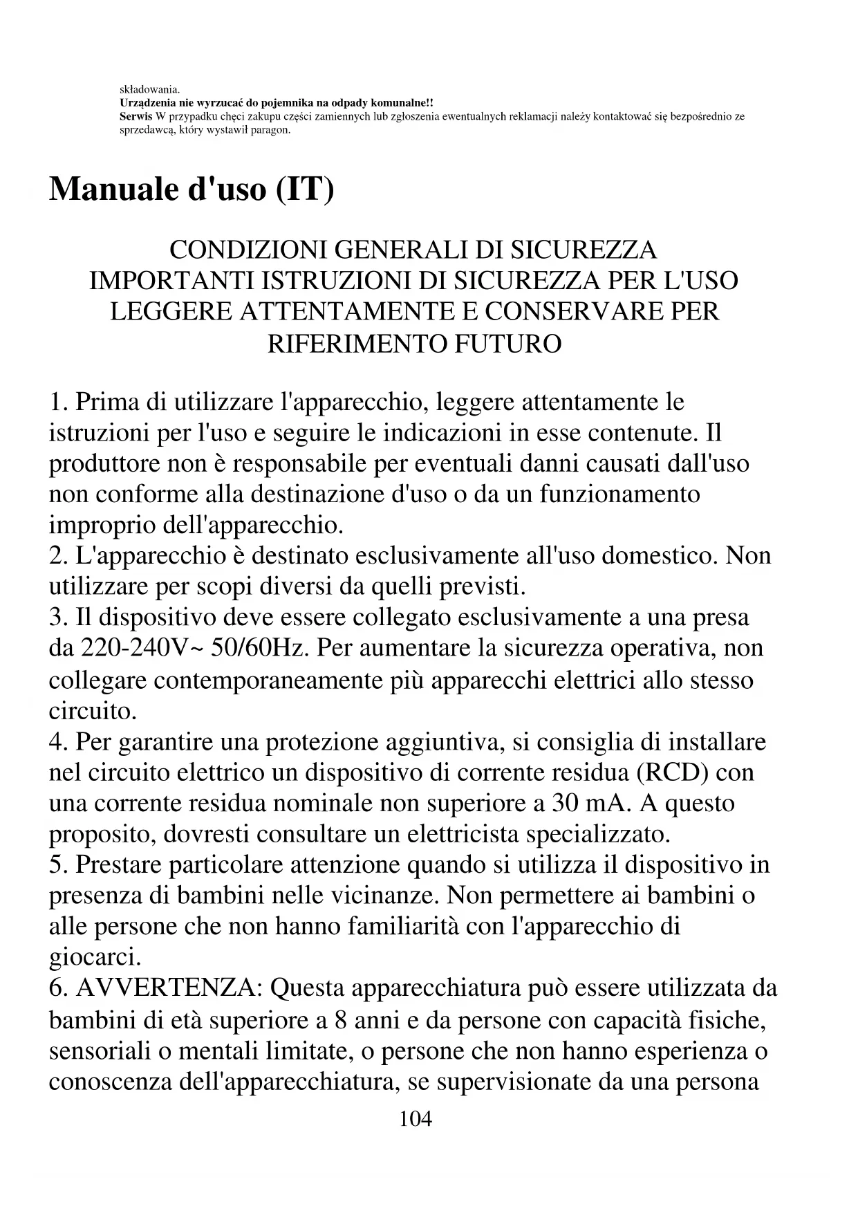 6. AVVERTENZA: Questa apparecchiatura può essere utilizzata da