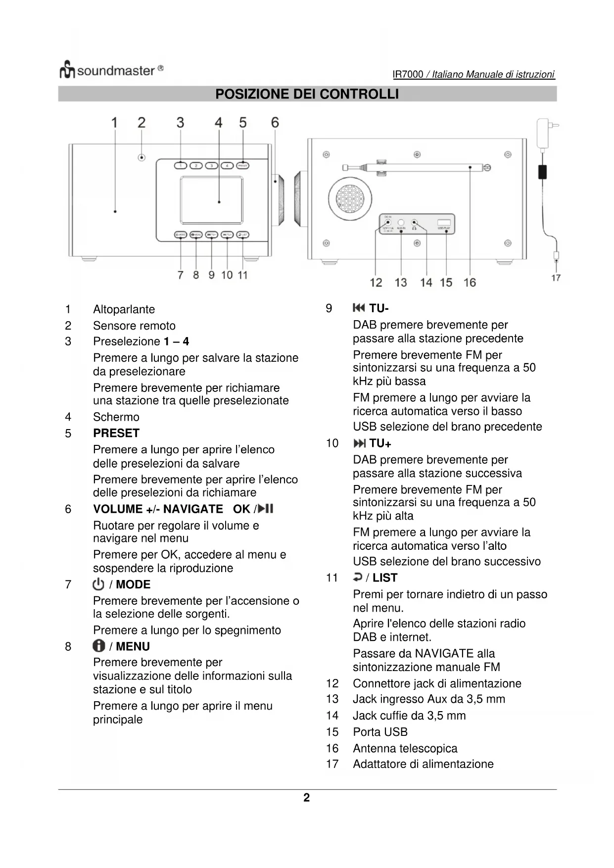IR7000 - Radio Soundmaster - Manuale utente e istruzioni gratuiti