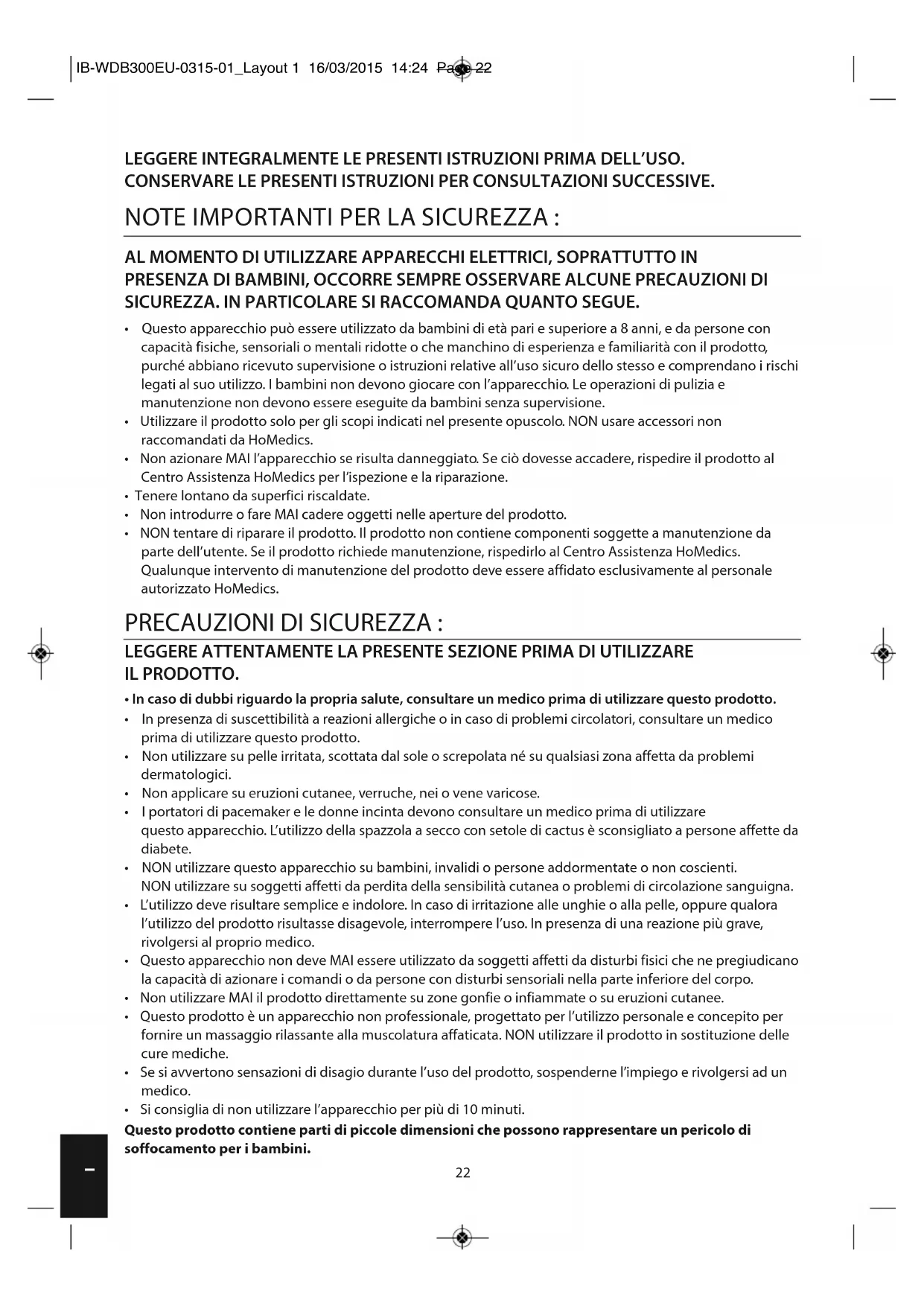 Trova gratuitamente il manuale del dispositivo WDB300EU HOMEDICS in formato PDF.