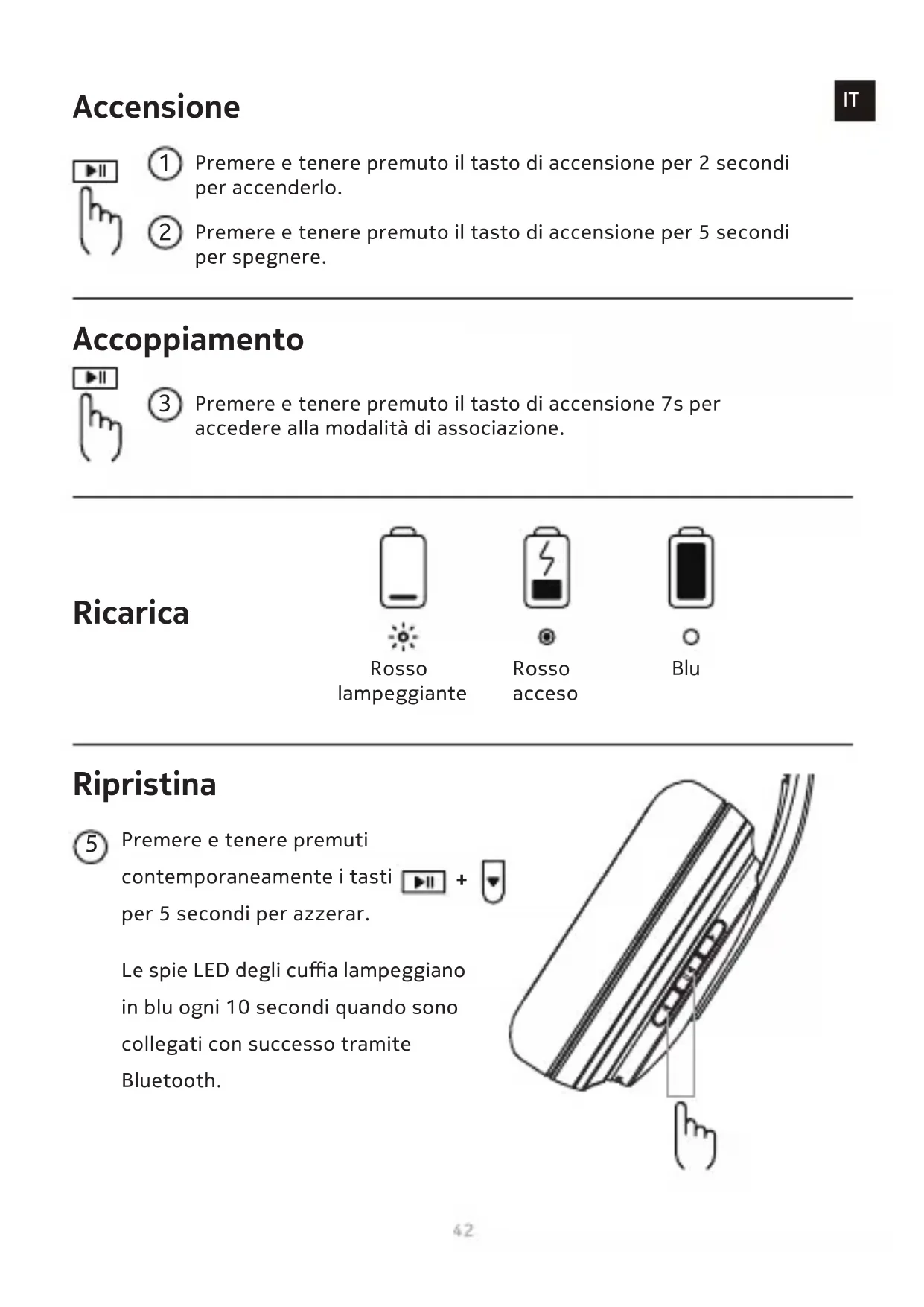 ITMusica Chiamata Assistente vocale Volume Tracciamento x 1 x 1 x 1 x 1 x 1 2 s 2 s 2 s 2 s Controlli a pulsante