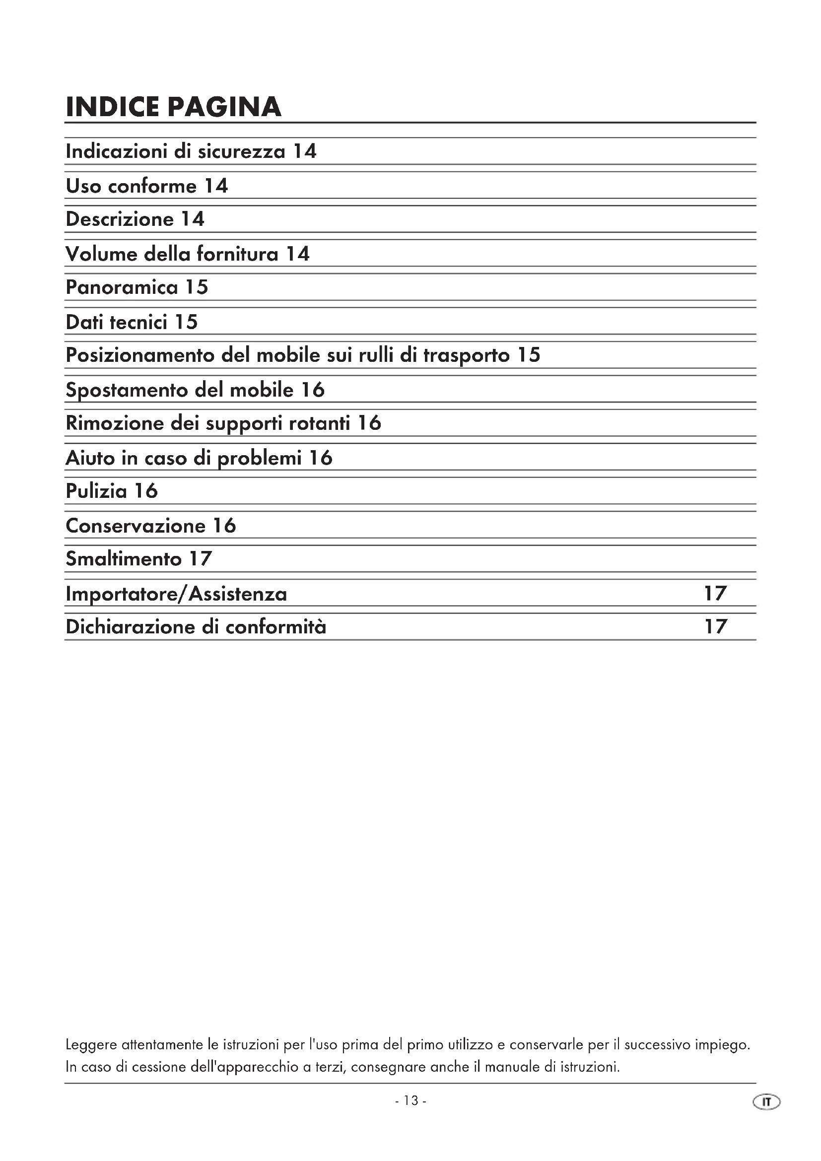 sotto il mobile, in modo tale che le ruote siano rivolte nella stessa direzione. 2.Spostare il mobile con l'ausilio dei supporti rotanti
