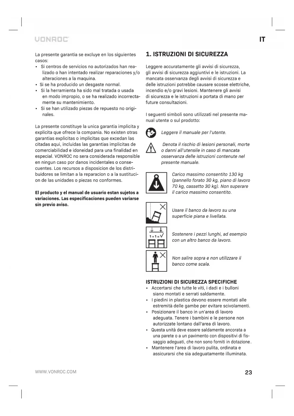 Scarica le istruzioni per il tuo Banco da lavoro in formato PDF gratuitamente! Trova il tuo manuale WB502XX - Vonroc e riprendi in mano il tuo dispositivo elettronico. In questa pagina sono pubblicati tutti i documenti necessari per l'utilizzo del tuo dispositivo. WB502XX del marchio Vonroc.