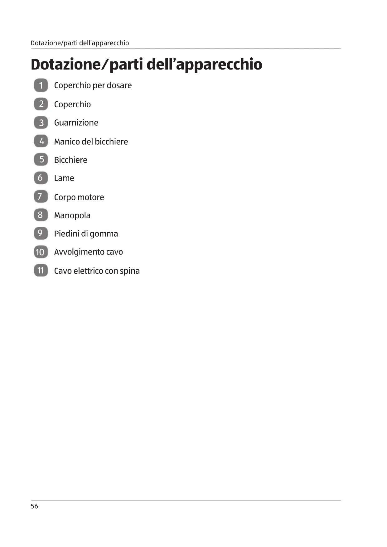 AVVERTIMENTO! Pericolo per bambini e persone dalle capacità fisiche, sensoriali o mentali ridotte (per esempio persone con handicap parziale, persone anziane con ridotte capacità fisiche o mentali) o mancanza di esperienza e conoscenza (per esempio ragazzi). − Questo apparecchio può essere utilizzato da persone con capacità fisiche, sensoriali o mentali ridotte o senza esperienza e/o conoscenza, se sorvegliate o istruite sull‘utilizzo in sicurezza dell‘apparecchio e se hanno compreso i pericoli che ne risultano. − I bambini non devono utilizzare l‘apparecchio. Tenere i bambini lontani dal frullatore e dal relativo cavo elettrico. − I bambini non devono giocare con l‘apparecchio. − Non lasciare incustodito il frullatore durante il funzionamento. − Non lasciare giocare i bambini con la pellicola della confezione. Potrebbero impigliarsi e soffocare durante il gioco. ATTENZIONE! Pericolo di lesioni! Un utilizzo non conforme del frullatore può comportare delle lesioni. − Un utilizzo non conforme del frullatore può comportare delle lesioni. − Le lame sono molto affilate. Fare attenzione quando si maneggia l‘apparecchio, si vuota il bicchiere o si pulisce il frullatore. − Non inserire mai liquidi bollenti nel bicchiere. − L‘apparecchio deve essere sempre scollegato dalla rete elettrica quando non viene sorvegliato, prima dell‘assemblaggio, lo smontaggio o la pulizia. − Prima della sostituzione degli accessori mobili durante il funzionamento, l‘apparecchio deve essere spento e scollegato dalla rete elettrica. 04_Standmixer CH IT INNEN.indd 61 10.01.2018 11:24:29Sicurezza