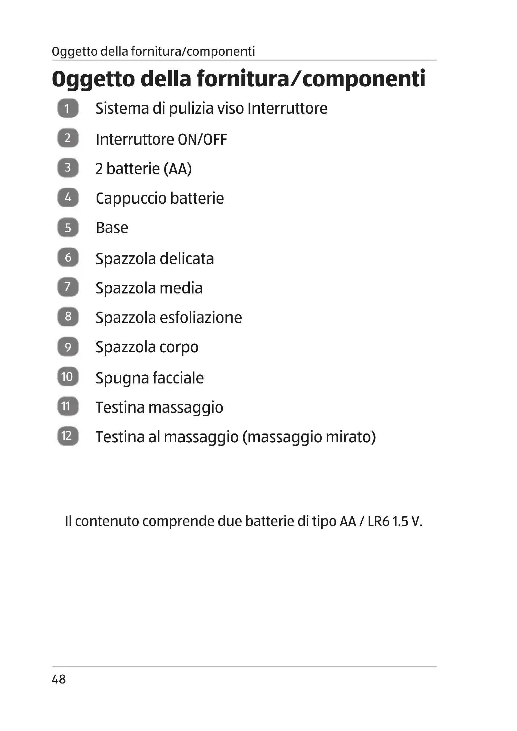 Testina al massaggio (massaggio mirato) Il contenuto comprende due batterie di tipo AA / LR6 1.5 V. 03 Gesichtsreinigungsbuerste IT Innen A6.indd 48 08.09.2017 11:27:12Con i codici QR raggiungete la meta facilmente e rapidamente