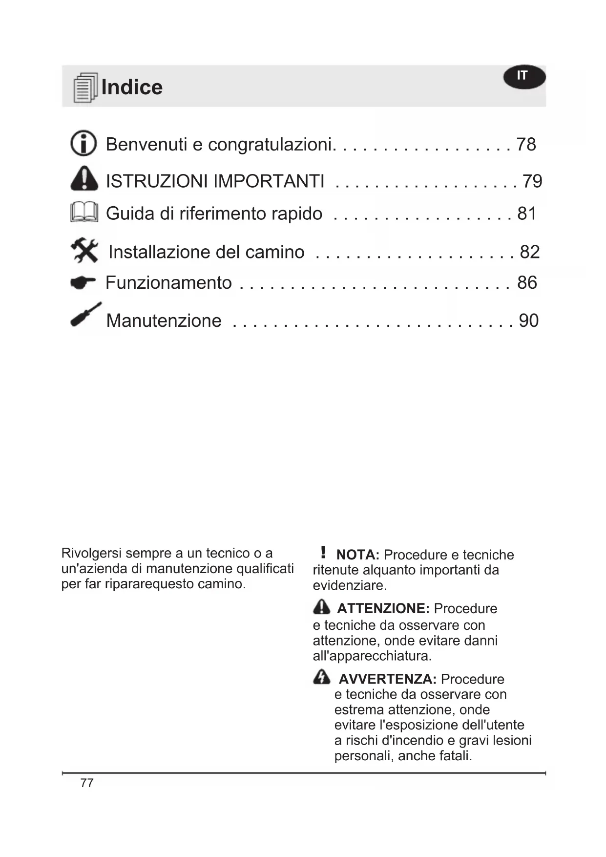 - ISTRUZIONI IMPORTANTI p. 79