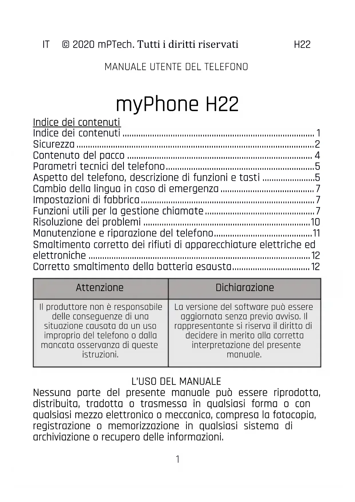 - myPhone H22 Indice dei contenuti Indice dei contenuti p. 1