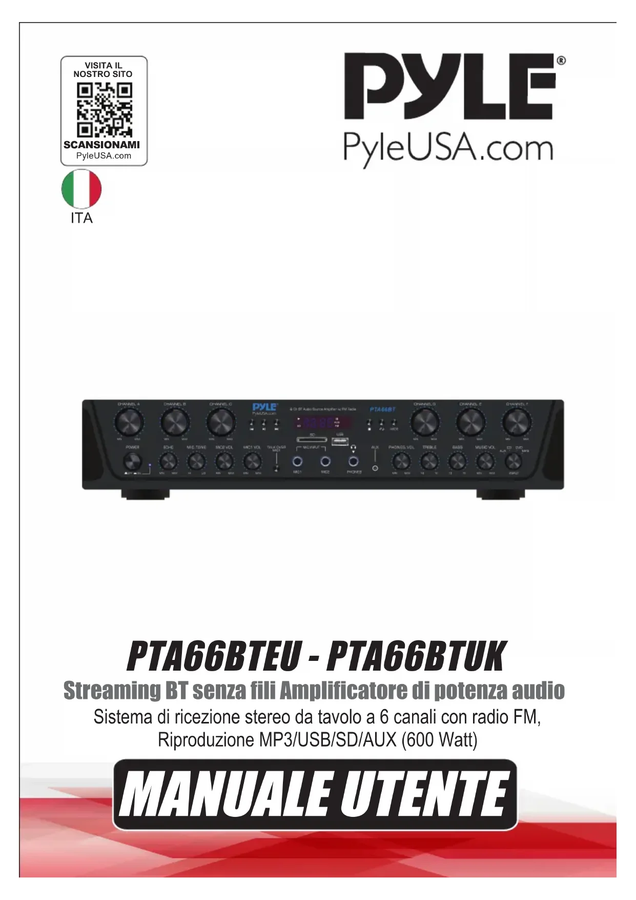 Scarica le istruzioni per il tuo Ricevitore in formato PDF gratuitamente! Trova il tuo manuale PTA66BT - Pyle e riprendi in mano il tuo dispositivo elettronico. In questa pagina sono pubblicati tutti i documenti necessari per l'utilizzo del tuo dispositivo. PTA66BT del marchio Pyle.