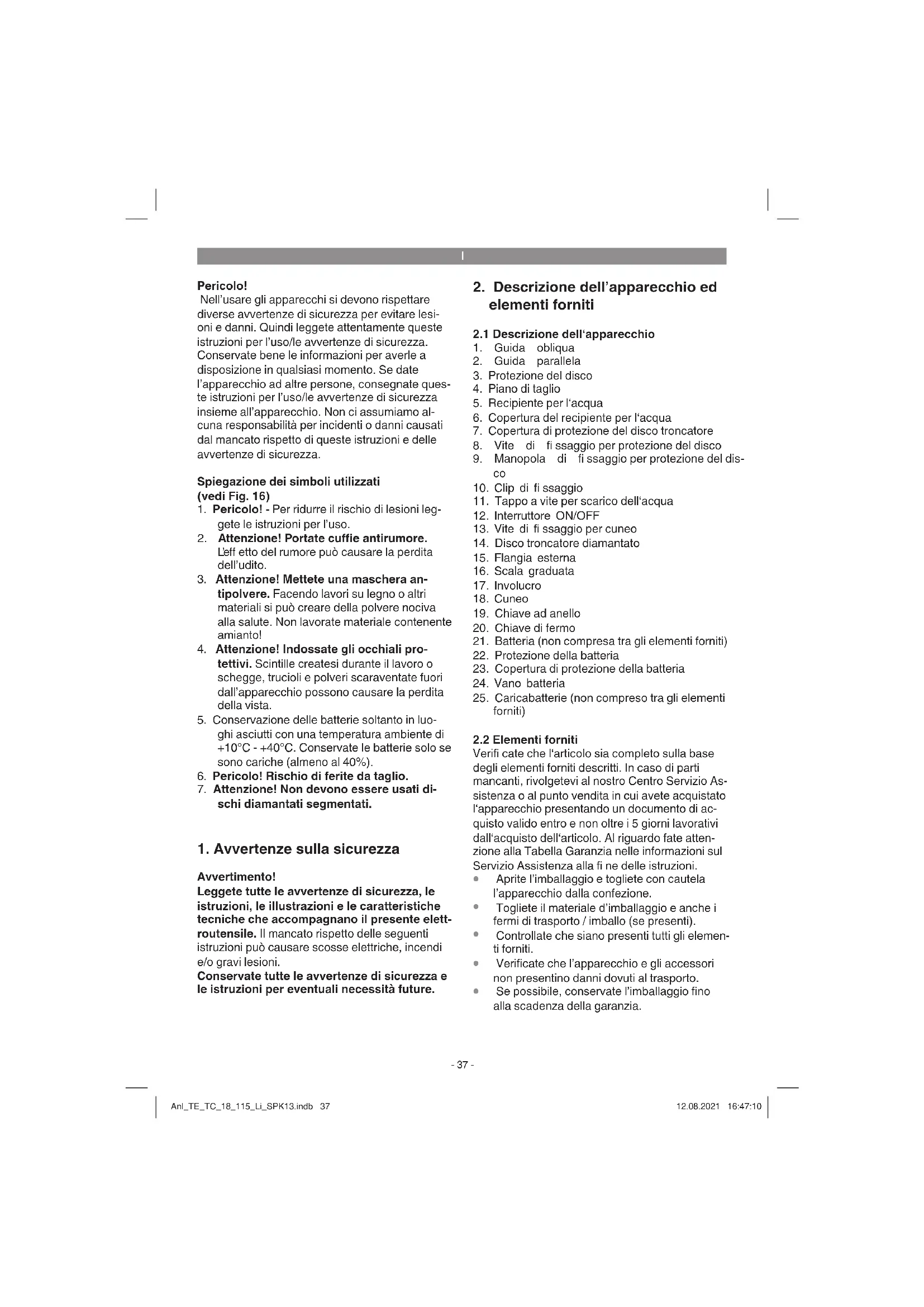 Durante il lavoro controllate i pezzi soggette ad usura ed il fissaggio di parti eventualmente allentate e verificate anche il montaggio degli Anl_TE_TC_18_115_Li_SPK13.indb 39Anl_TE_TC_18_115_Li_SPK13.indb 39 12.08.2021 16:47:1012.08.2021 16:47:10I