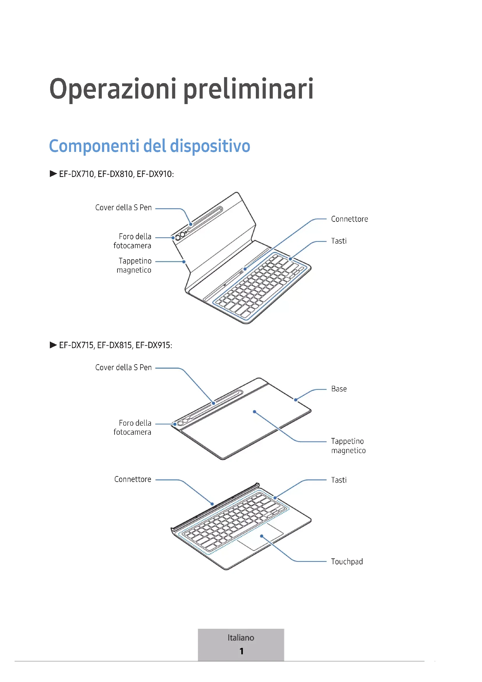 EF-DX715, EF-DX815, EF-DX915: Foro della fotocamera Base Tappetino magnetico Cover della S Pen Touchpad TastiConnettore Italiano
