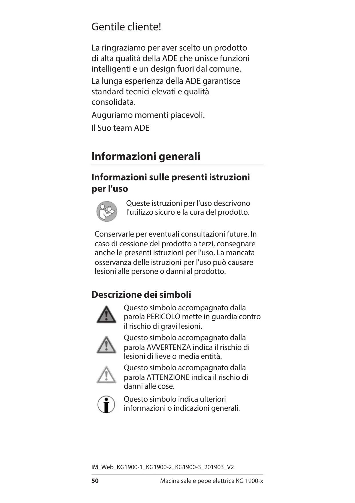 MANUALE UTENTE KG 19001 ADE