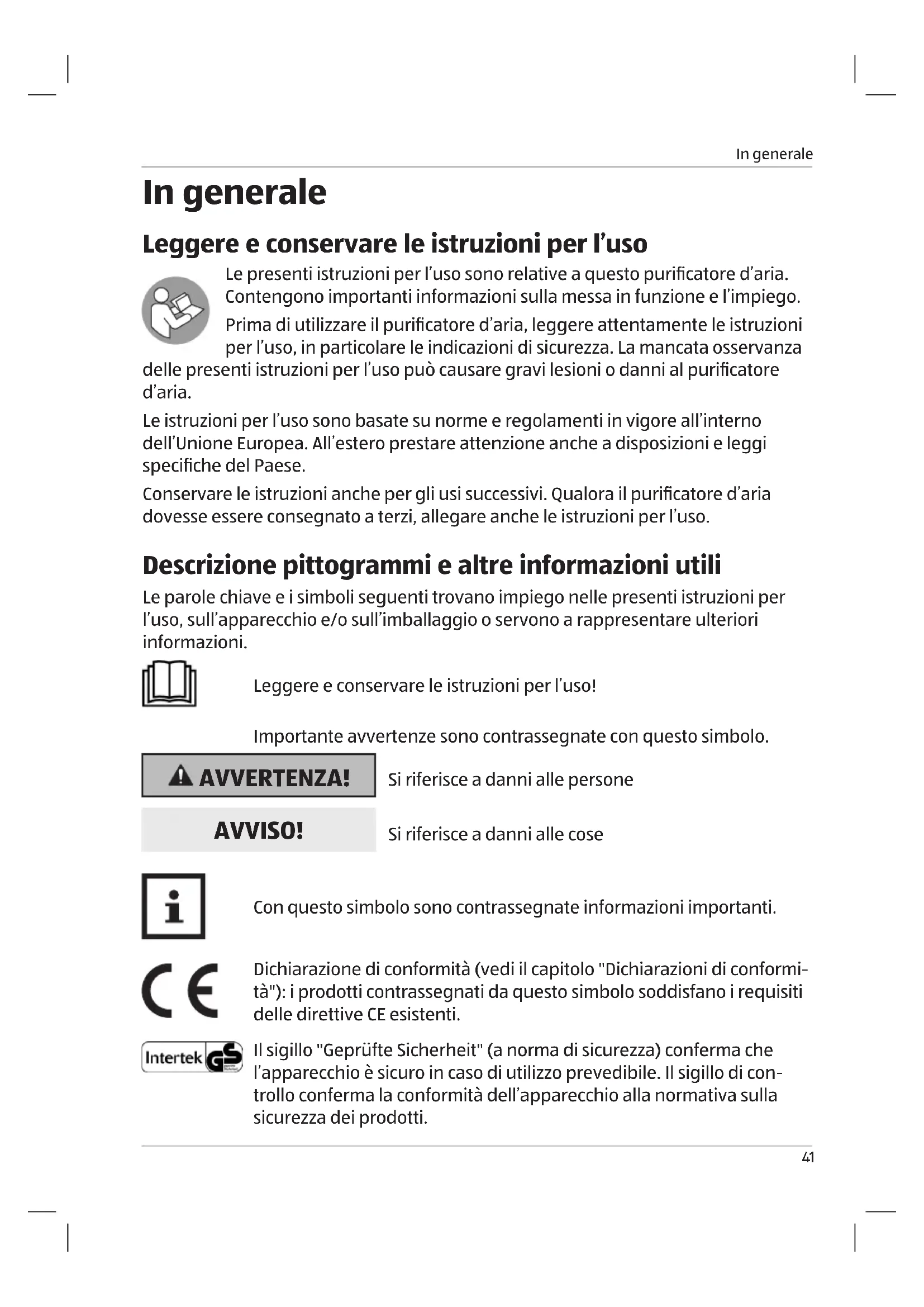 - Leggere e conservare le istruzioni per l’uso p. 41