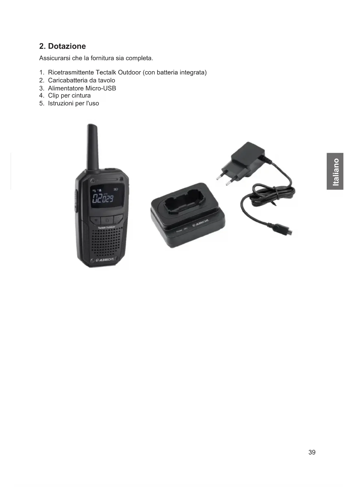 Scarica le istruzioni per il tuo Walkie-talkie in formato PDF gratuitamente! Trova il tuo manuale Tectalk Outdoor - ALBRECHT e riprendi in mano il tuo dispositivo elettronico. In questa pagina sono pubblicati tutti i documenti necessari per l'utilizzo del tuo dispositivo. Tectalk Outdoor del marchio ALBRECHT.