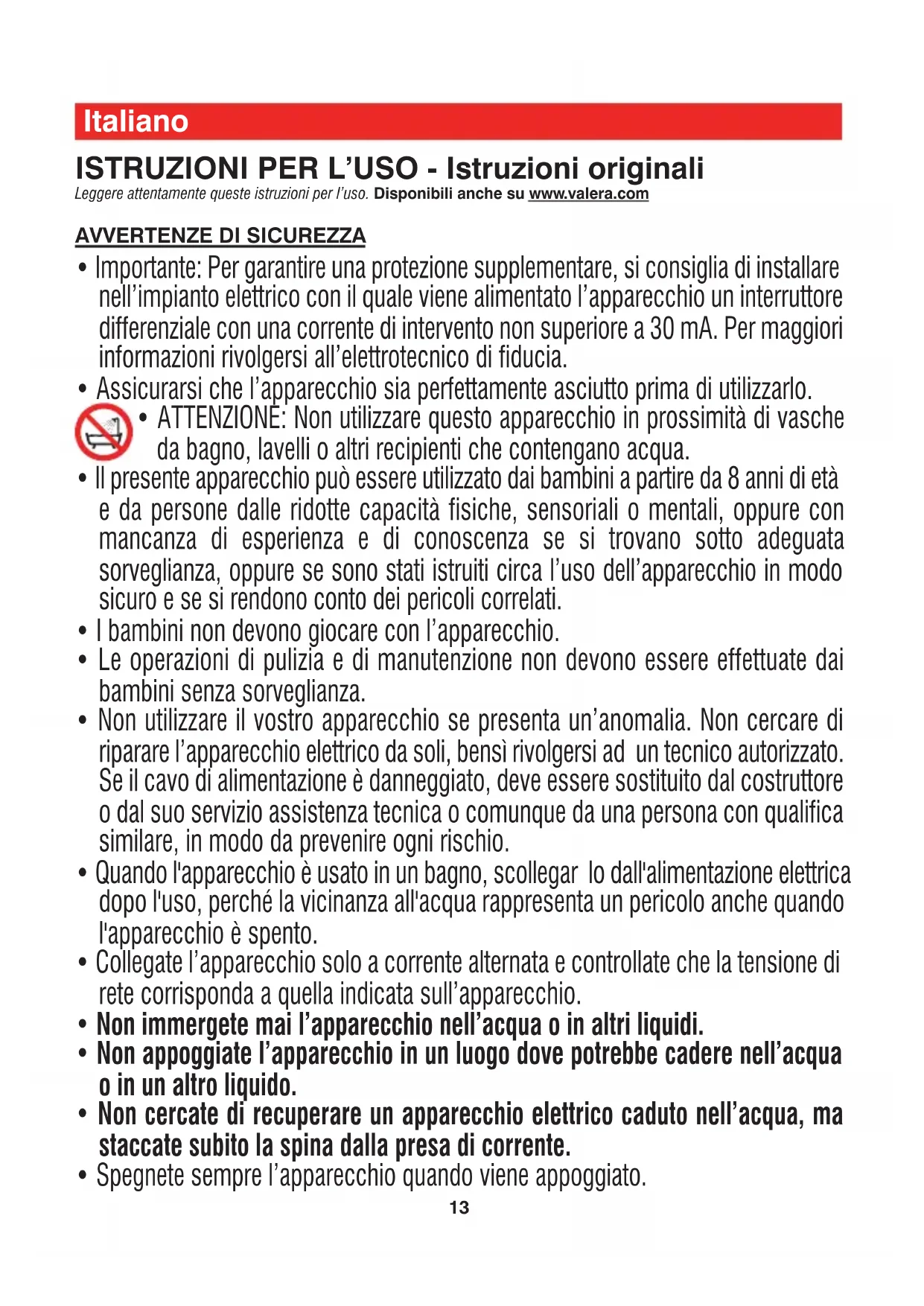 - Assicurarsi che l’apparecchio sia perfettamente asciutto prima di utilizzarlo.