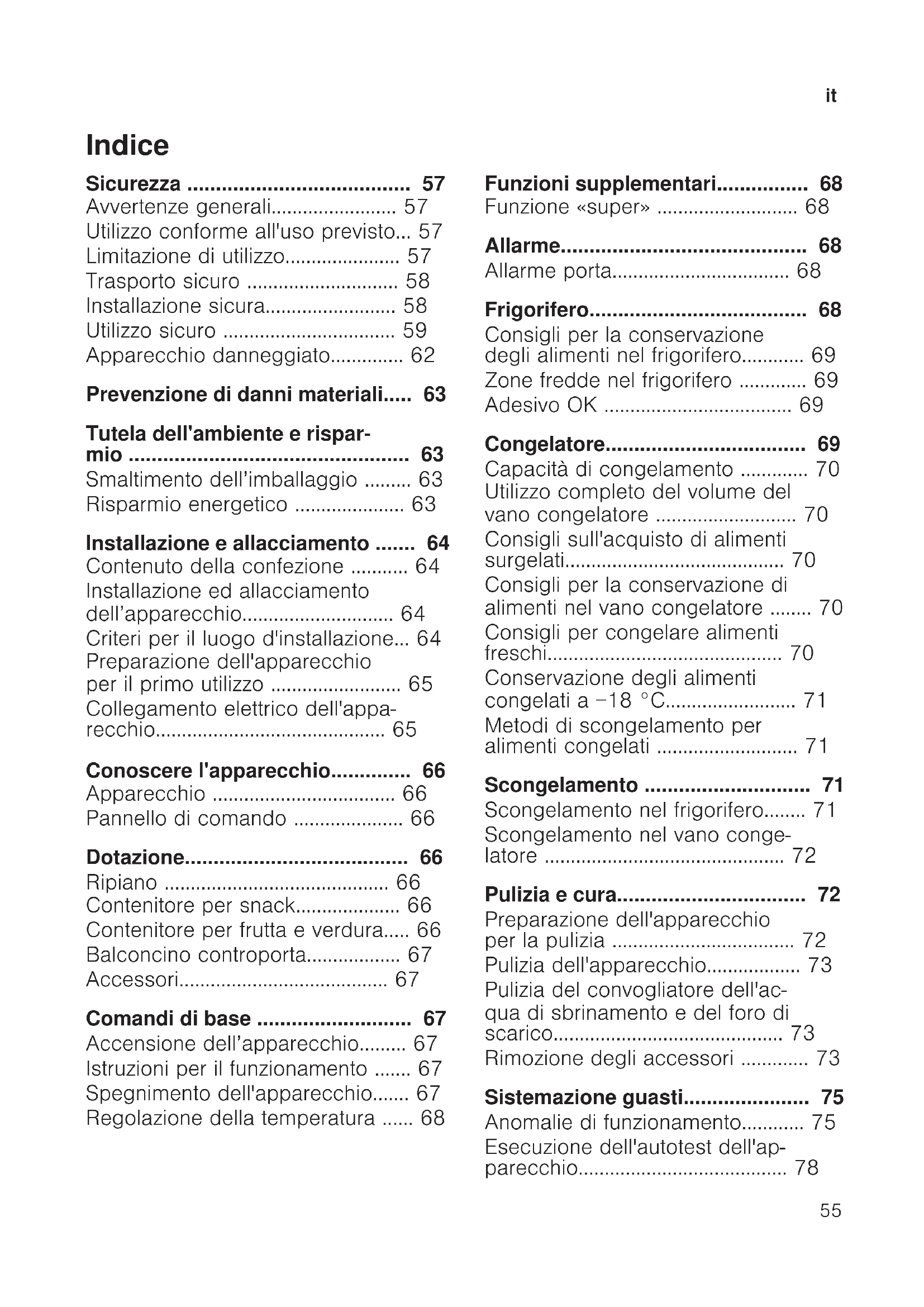 - Consigli per la conservazione di alimenti nel vano congelatore p. 70