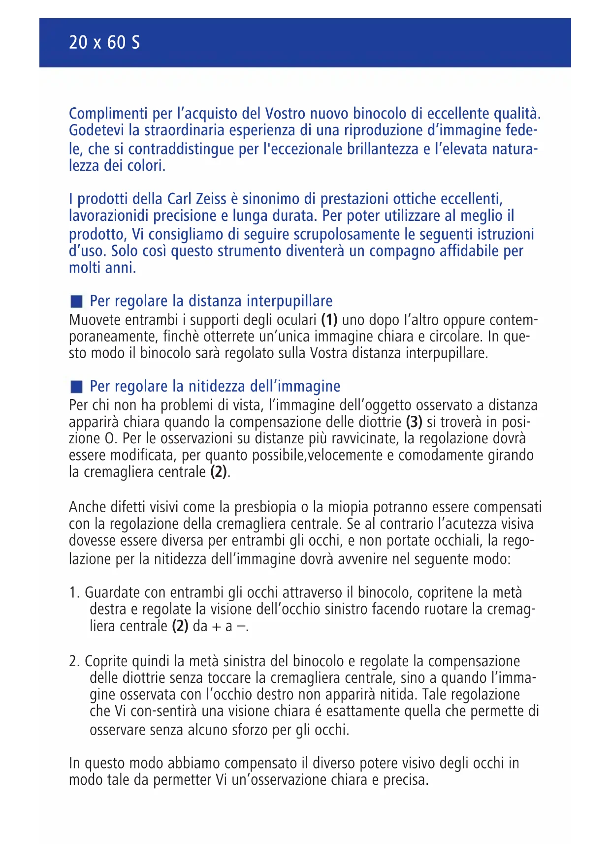 MANUALE UTENTE 20x60 S ZEISS