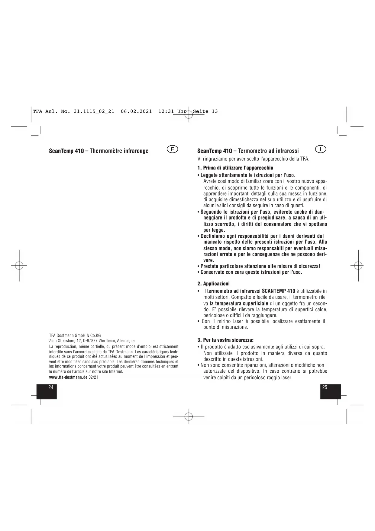 MANUALE UTENTE ScanTemp 410 31.1115 TFA