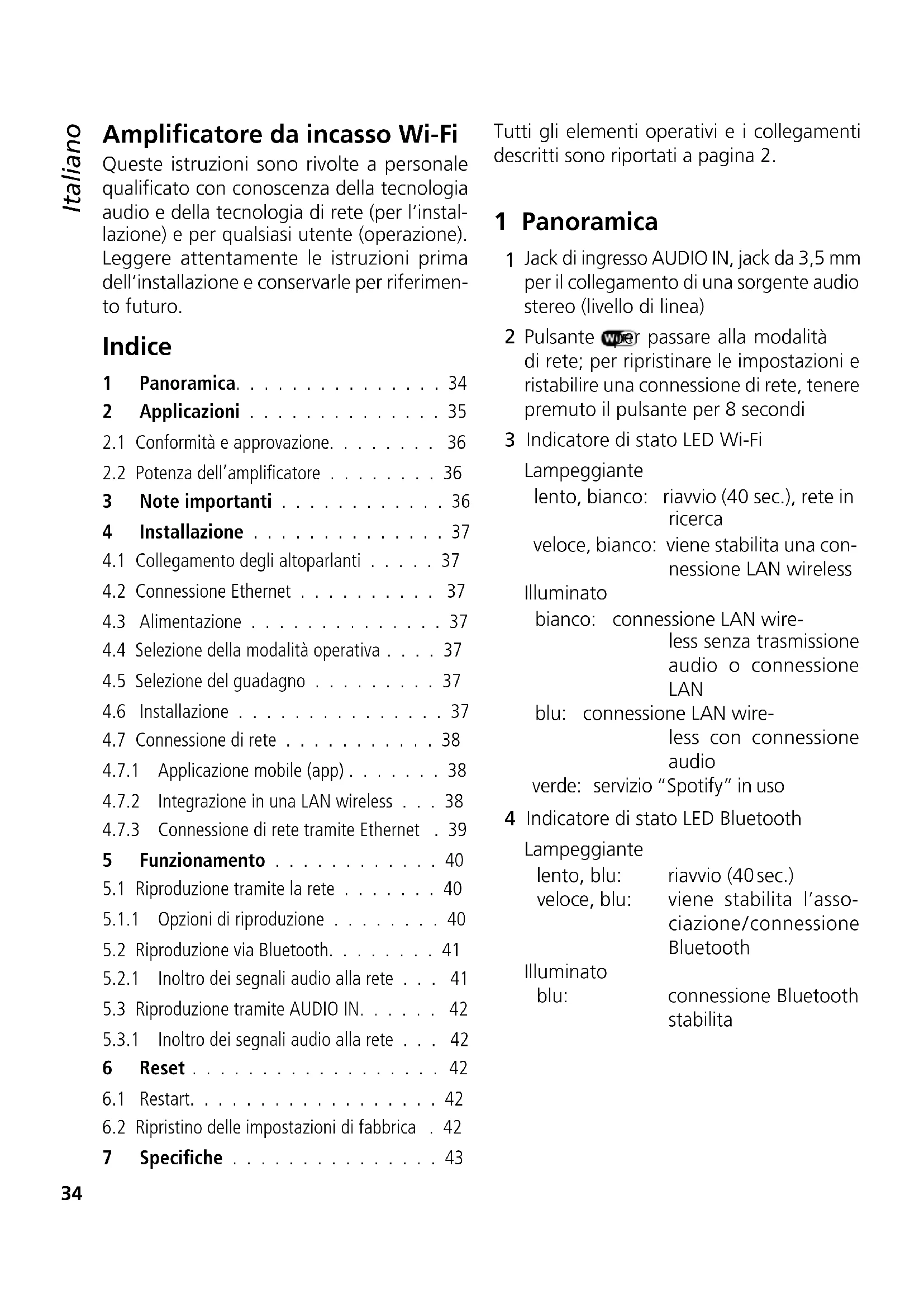 Tutti e tre gli indicatori LED (3 - 5) lampeggiano lentamente sono a quando I'amplificatore è collegato alla rete. L'indicatore LED (3) si illumina in bianco una volta stabilita la connessione.