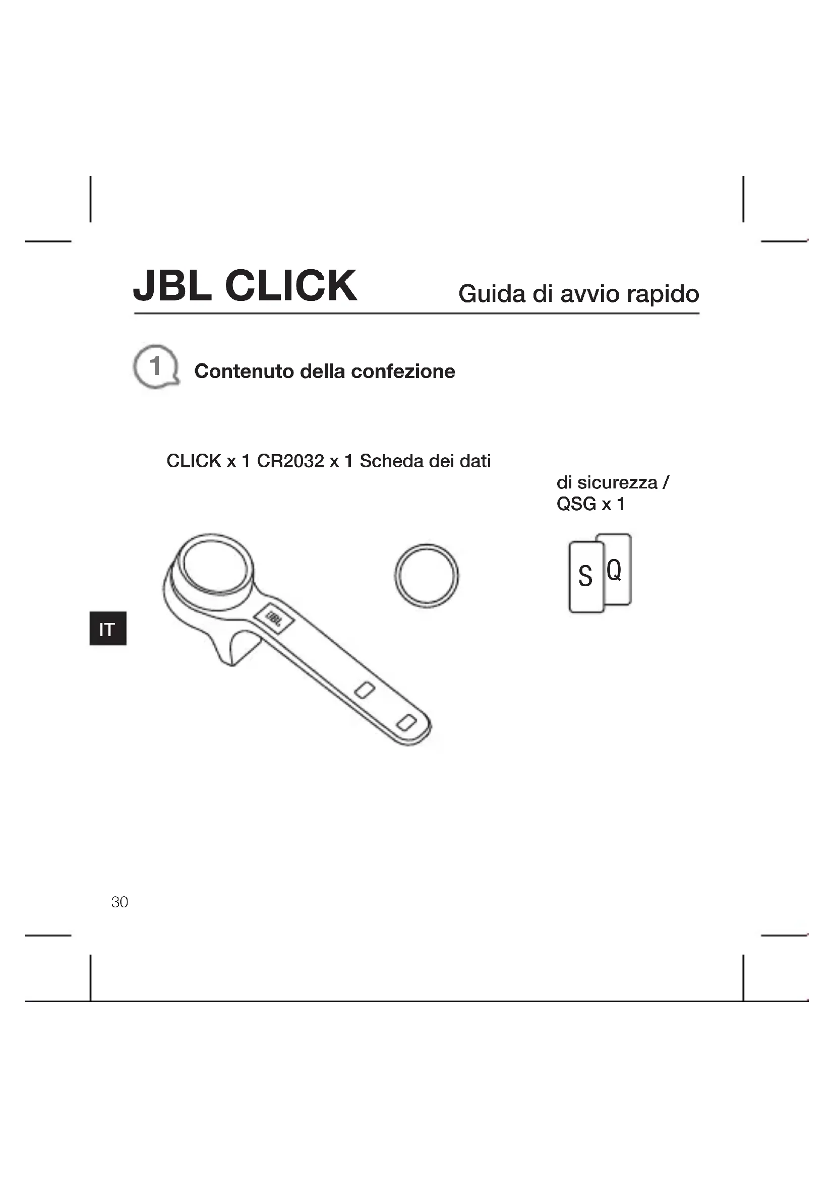 CLICK x 1 CR2032 x 1 Scheda dei dati di sicurezza / QSG x 1JBL CLICK Guida di avvio rapido