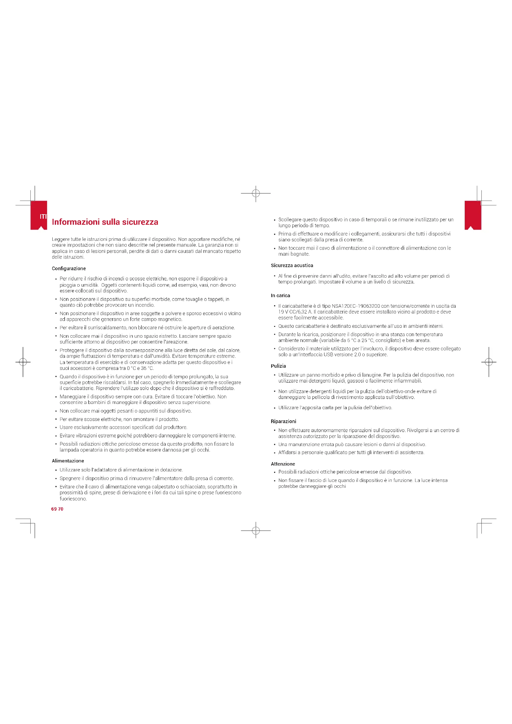 Maneggiare il dispositivo sempre con cura. Evitare di toccare l’obiettivo. Non consentire a bambini di maneggiare il dispositivo senza supervisione.