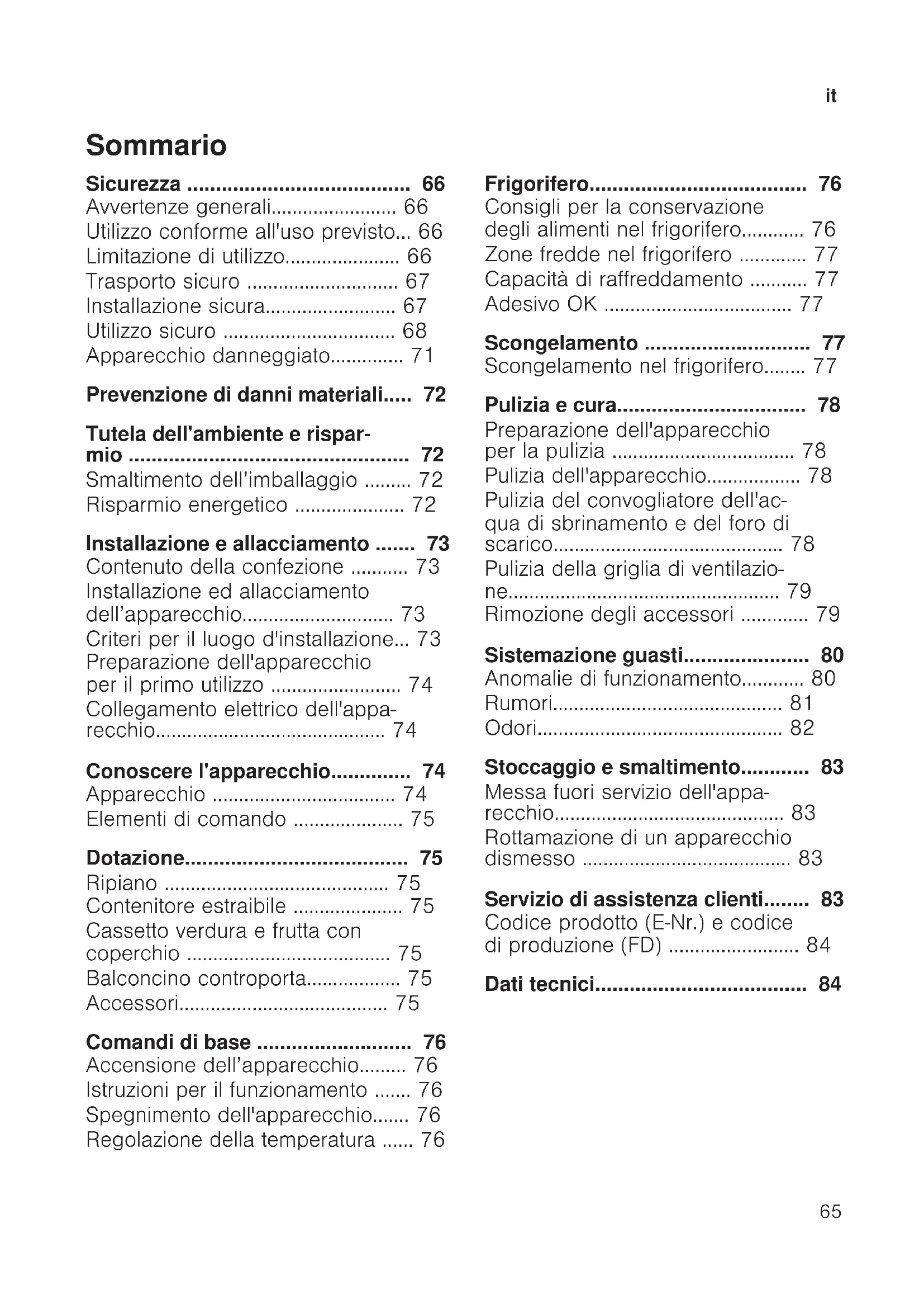 - Sommario Sicurezza p. 66