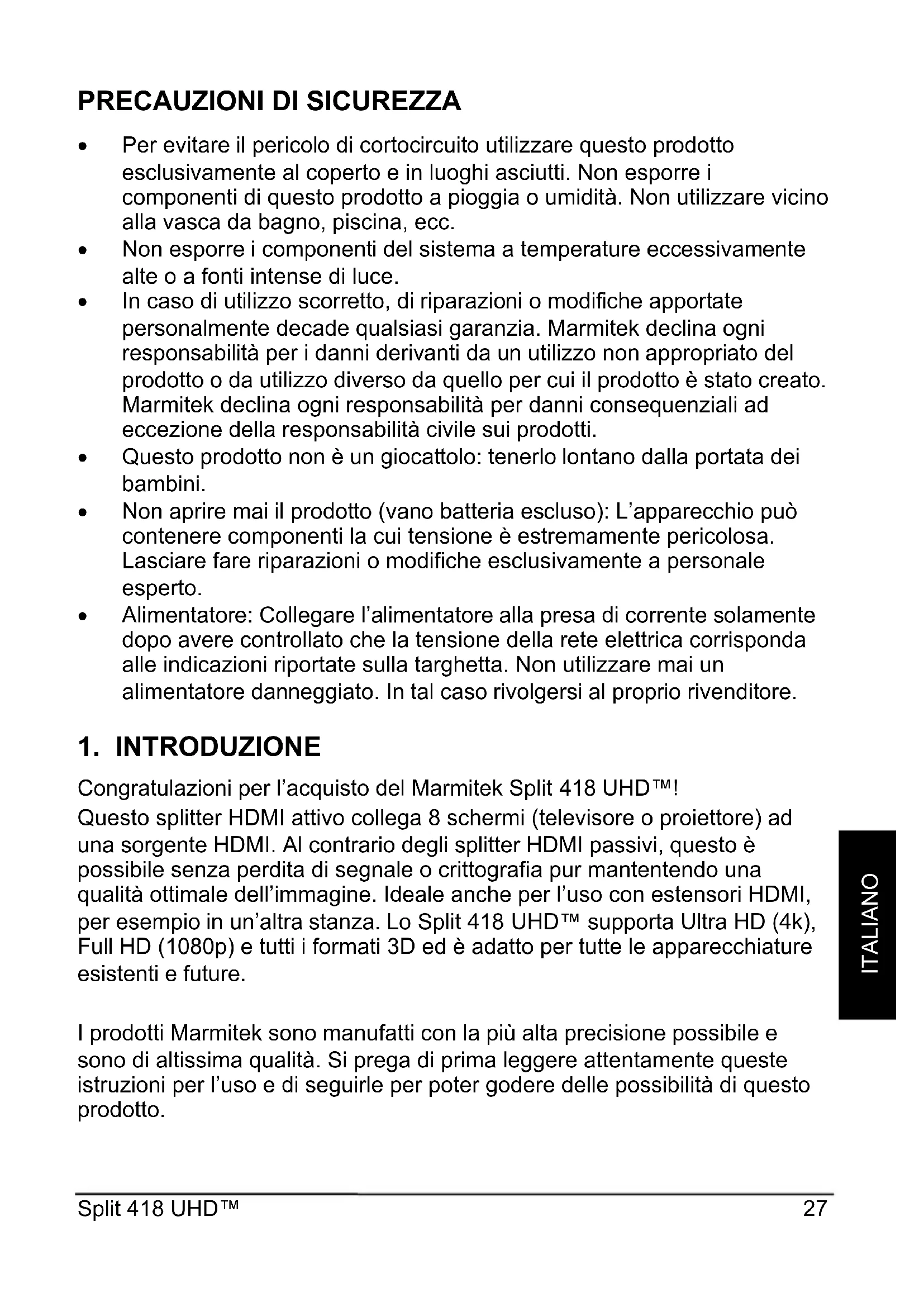 Split 418 UHD - Distributore MARMITEK - Manuale utente e istruzioni gratuiti