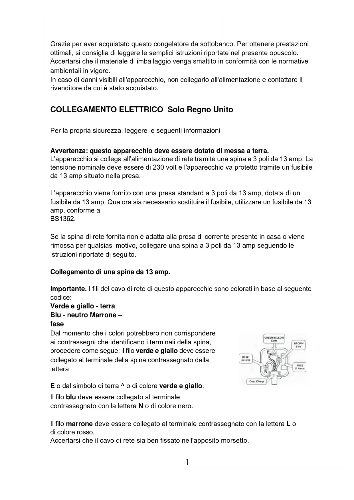 5INSTALLAZIONE SISTEMAZIONE DELL'APPARECCHIO Non collocare l'apparecchio in un locale in cui di notte la temperatura possa scendere al di sotto di 16°C (61°F), specialmente in inverno, poiché è stato progettato per funzionare a temperature ambienti comprese tra +16 e +32°C (61 e 90°F). A temperature inferiori l'apparecchio potrebbe non funzionare, con una conseguente riduzione della durata di conservazione degli alimenti. Non collocare l'apparecchio in prossimità di fornelli o radiatori o esposto alla luce solare diretta, altrimenti i dispositivi di funzionamento del prodotto potrebbero essere sollecitati in maniera eccessiva. Se l'apparecchio viene installato in prossimità di una fonte di calore o di un frigorifero, rispettare le seguenti distanze minime. Scegliere un locale ben ventilato e accertarsi che vi sia uno spazio libero di almeno 10 cm intorno al congelatore. Collocare il congelatore in una posizione che garantisca un appoggio stabile al fine di evitare vibrazioni e rumore eccessivo. Regolare l'assetto orizzontale del congelatore agendo sui due piedi anteriori. NON COLLOCARE QUESTO PRODOTTO IN UN LOCALE ECCESSIVAMENTE FREDDO O UMIDO, COME UN GARAGE O UNA CANTINA ECC. ATTENDERE 2 O 3 ORE PRIMA DI COLLEGARE ALL'ALIMENTAZIONE E ACCENDERE L'APPARECCHIO, IN MODO DA CONSENTIRE L'ASSESTAMENTO DEL LIQUIDO REFRIGERANTE. ATTENDERE ALMENO 2 ORE DOPO LA MESSA IN FUNZIONE PRIMA DI CONSERVARE ALIMENTI NEL CONGELATORE. IL CIRCUITO DEL REFRIGERANTE NON DEVE ESSERE DANNEGGIATO IN ALCUNA CIRCOSTANZA. QUESTO PRODOTTO È DESTINATO UNICAMENTE AD USO DOMESTICO, QUALSIASI USO DIVERSO PUÒ INVALIDARE LA GARANZIA E RISULTARE PERICOLOSO In caso di sostituzione di un vecchio apparecchio con sportello dotato di lucchetto o di fermo, accertarsi che il meccanismo di chiusura sia reso inutilizzabile per evitare che bambini possano entrare per gioco nel congelatore e rimanervi intrappolati. Per informazioni sulle procedure di smaltimento corrette si consiglia di rivolgersi all'ente locale preposto. Smaltire tutto il materiale di imballaggio in maniera ecocompatibile. Il congelatore è adatto per la conservazione a lungo termine di alimenti congelati confezionati e può essere utilizzato per congelare e conservare cibi freschi. In caso di interruzione di corrente, non aprire lo sportello. se l'interruzione dura meno di 12 ore, gli alimenti congelati non dovrebbero subire conseguenze . Se l'interruzione è più lunga, controllarne le condizioni e consumarli al momento o cuocerli e ricongelarli.