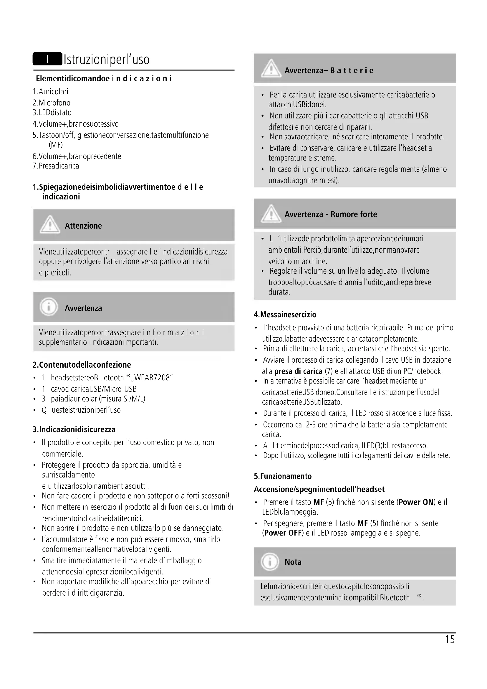 - L‘utilizzo del prodotto limita la percezione dei rumori ambientali. Perciò, durante l‘utilizzo, non manovrare veicoli omacchine.
