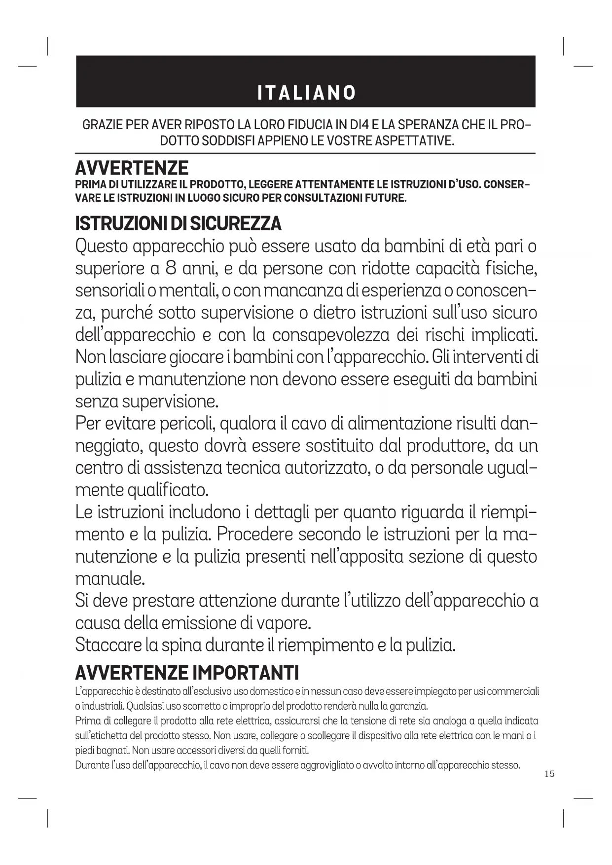 MANUALE UTENTE High Steam 1600 Di4