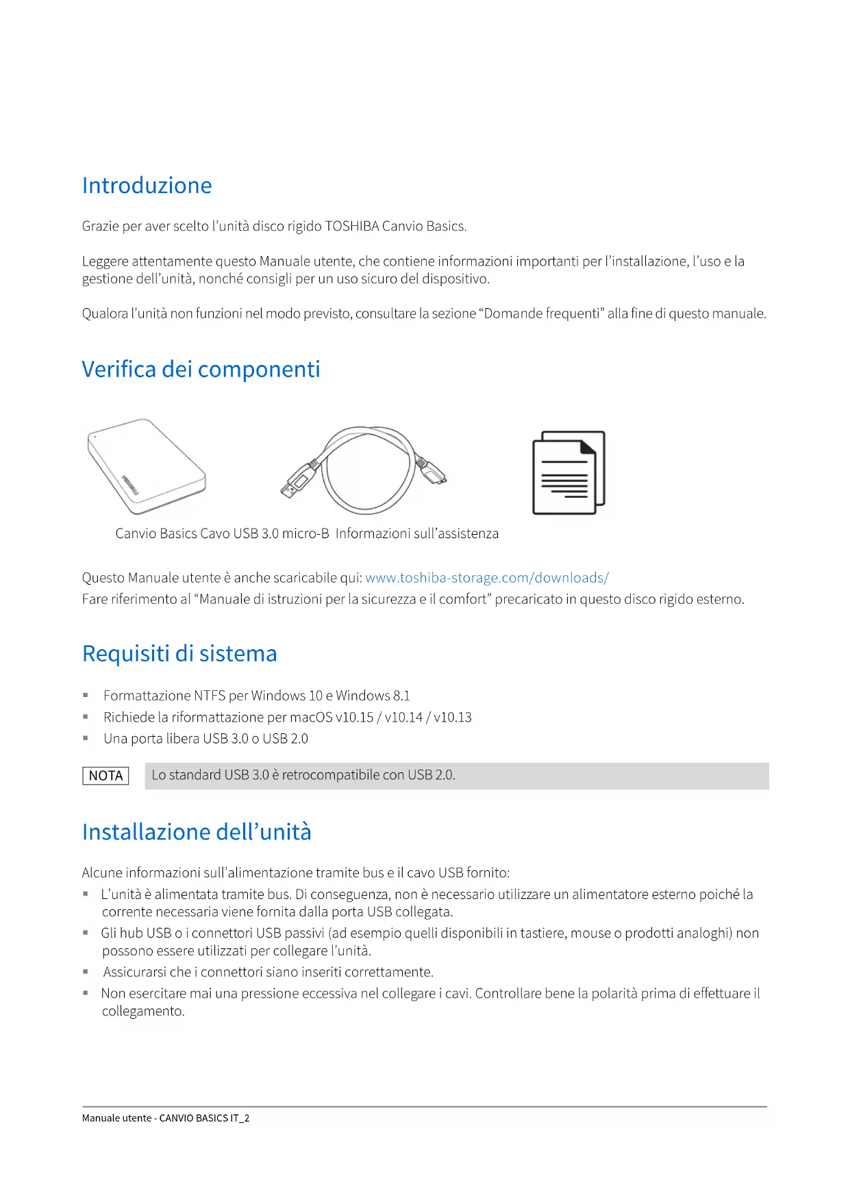 Canvio Basics USBC - Disco rigido esterno TOSHIBA - Manuale utente e istruzioni gratuiti