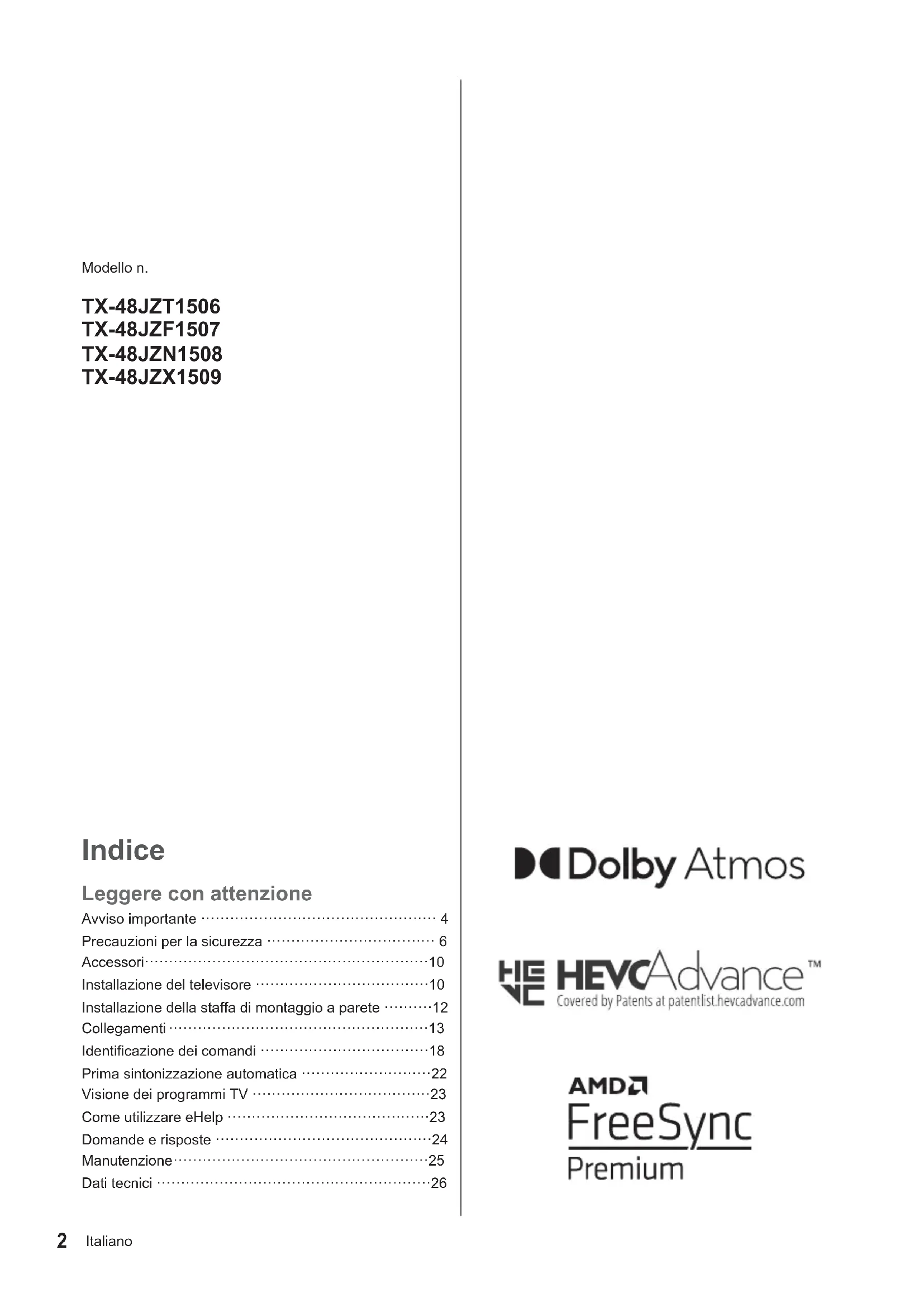 TX48JZT1506 - Televisore PANASONIC - Manuale utente e istruzioni gratuiti